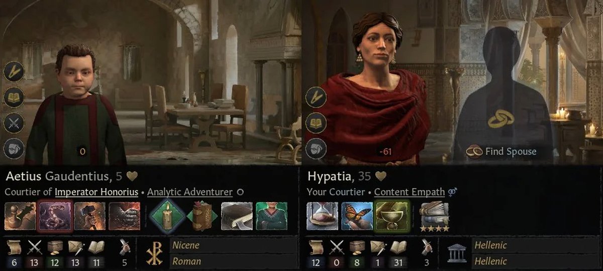 Вводят новых персонажей. Например, Флавия Аэция, который должен разбить Аттилу, когда подрастёт. Или Гипатию - женщину-философа поздней античности.