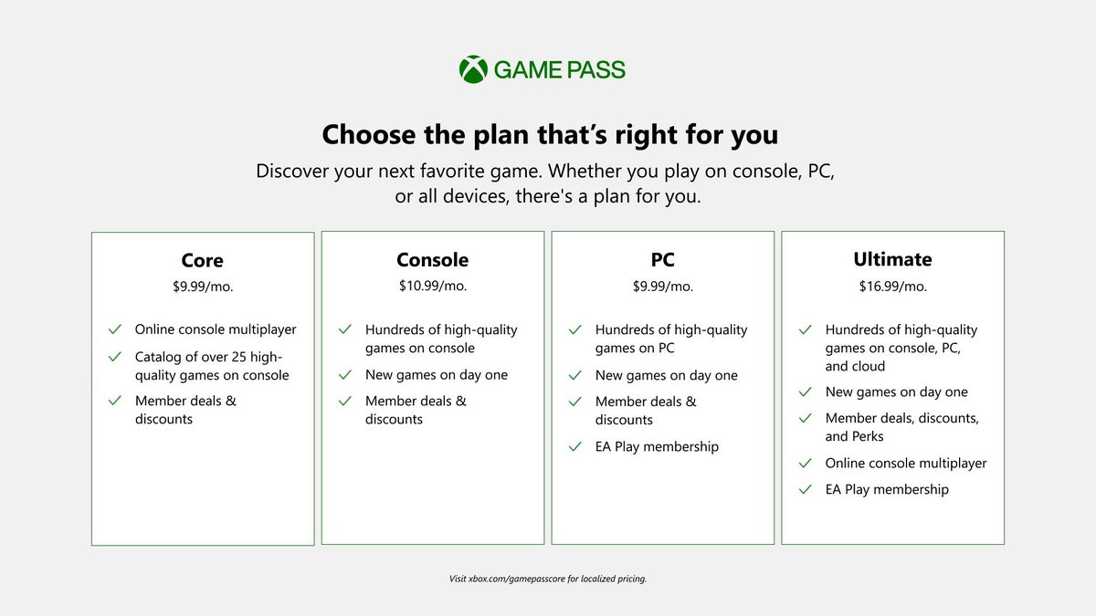 Базовая подписка Game Pass за $9.99 в месяц даст доступ к мультиплееру и позволит поиграть в «высококачественные игры» из ограниченного каталога. Судя по анонсу, перевод подписчиков пройдет автоматически.