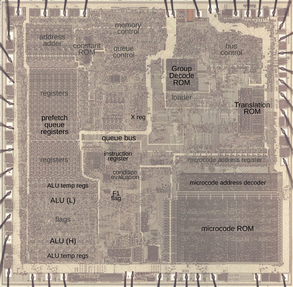 В общей сложности процессор 8086 поддерживал 521 инструкцию. Если бы кто-то решил скопировать микрокод процессора Intel, то наверняка оставил бы и все поддерживаемые инструкции — для обеспечения совместимости.
