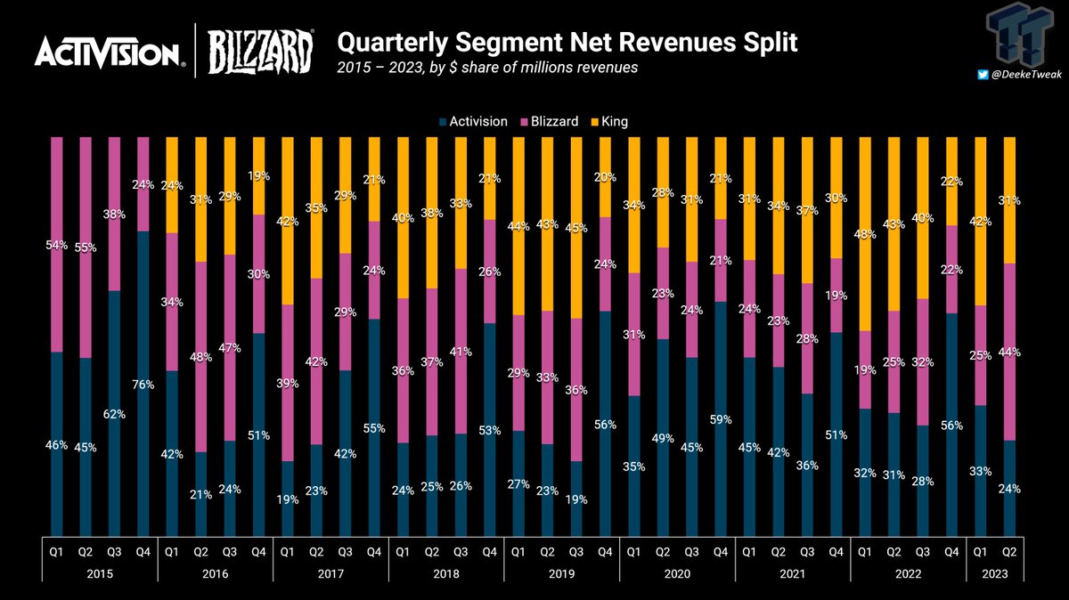 Кроме того, Blizzard обошла по выручке King, мобильное подразделение Activision Blizzard — в прошлом квартале оно сгенерировало 31% выручки. В последний раз такое происходило в том же 2019 году.