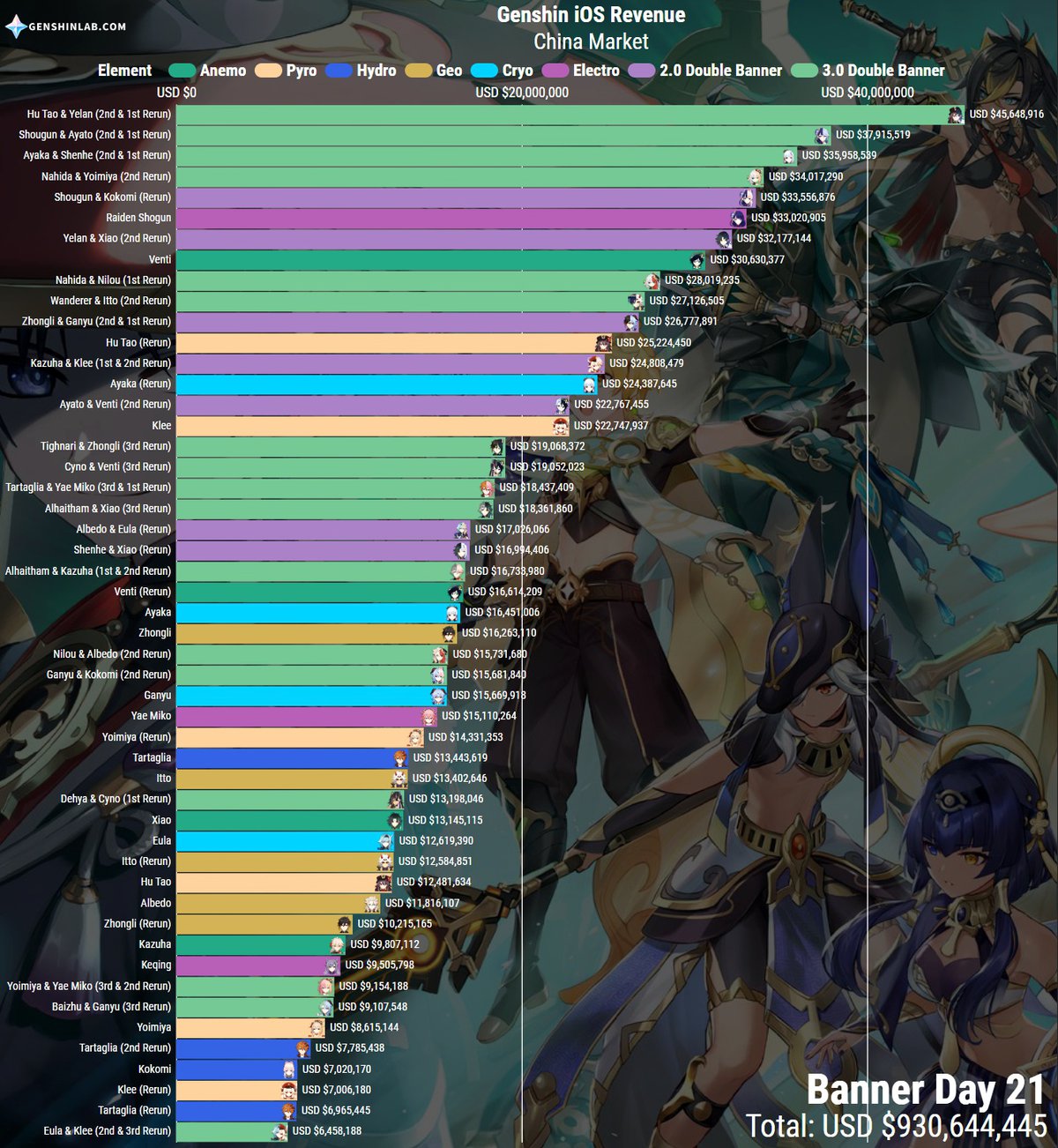 Это неплохой ориентир. Хотя мы не знаем, сколько баннеры приносят в остальных регионах, на долю игроков из Китая, пользующихся iOS, приходится около трети выручки Genshin Impact с мобильных платформ.