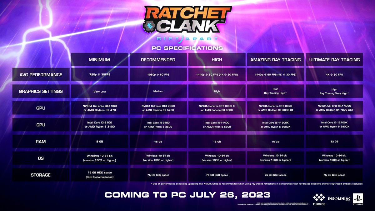 В релизной версии Ratchet & Clank Rift Apart трассировка лучей будет работать только на видеокартах Nvidia. Студия Nixxes, занимавшаяся портом, мельком сообщает об этом в материале, посвященном системным требованиям игры.