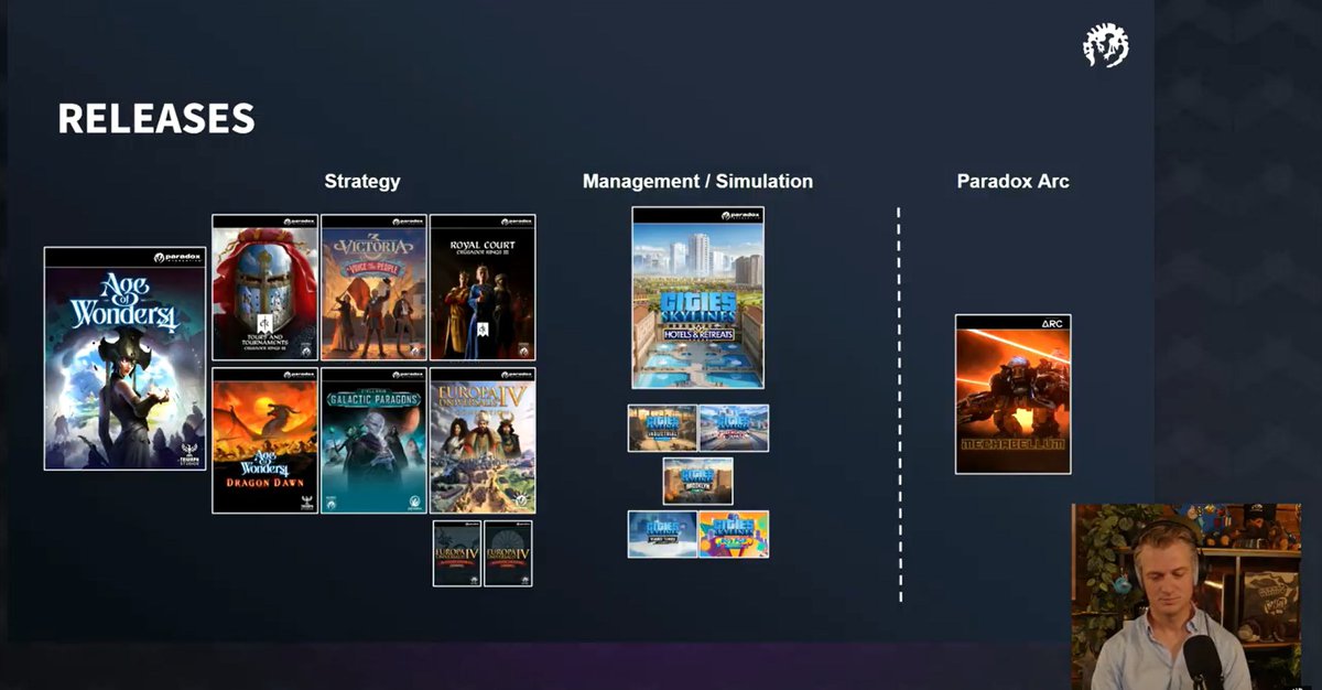 - Релиз дополнений: Domination для Europa Universalis IV, Galactic Paragons для Stellaris, Tours & Tournaments для Crusader Kings 3, Voice of the People для Victoria 3, Hotels & Retreats для Cities: Skylines и Dragon Dawn для Age of Wonders 4.