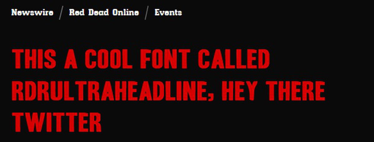Шрифт под названием RDRUltraHeadline должен использоваться в официальном блоге Rockstar Games. Фанаты полагают, что его задействуют в постах, связанных с ремастером игры, якобы находящемся в разработке; сам шрифт выглядит вот так.