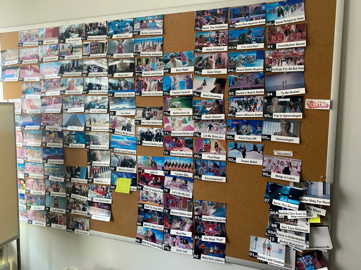 У «Барби» некоторое время планировалась сцена после титров. Фанаты узнали об этом благодаря появлению фотографии из офиса монтажера: сцена должна была называться Midge in Labor.