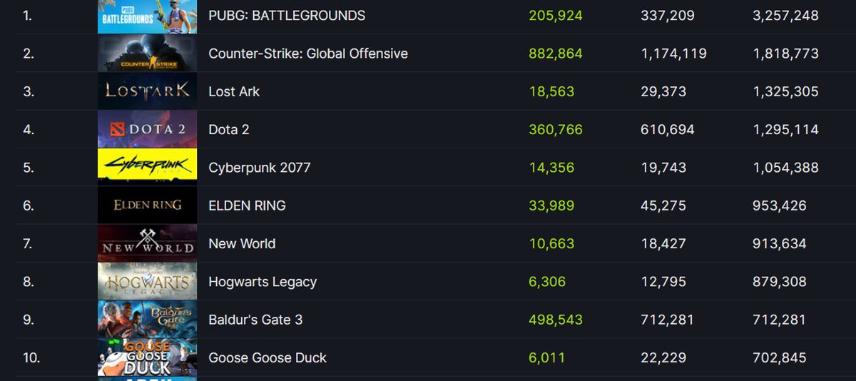 Достижение первой отметки позволило Baldur's Gate 3 попасть в десятку игр Steam с наивысшим онлайном за всю историю магазина. Второе достижение дало Baldur's Gate 3 возможность подняться на 9 место в этом топе.