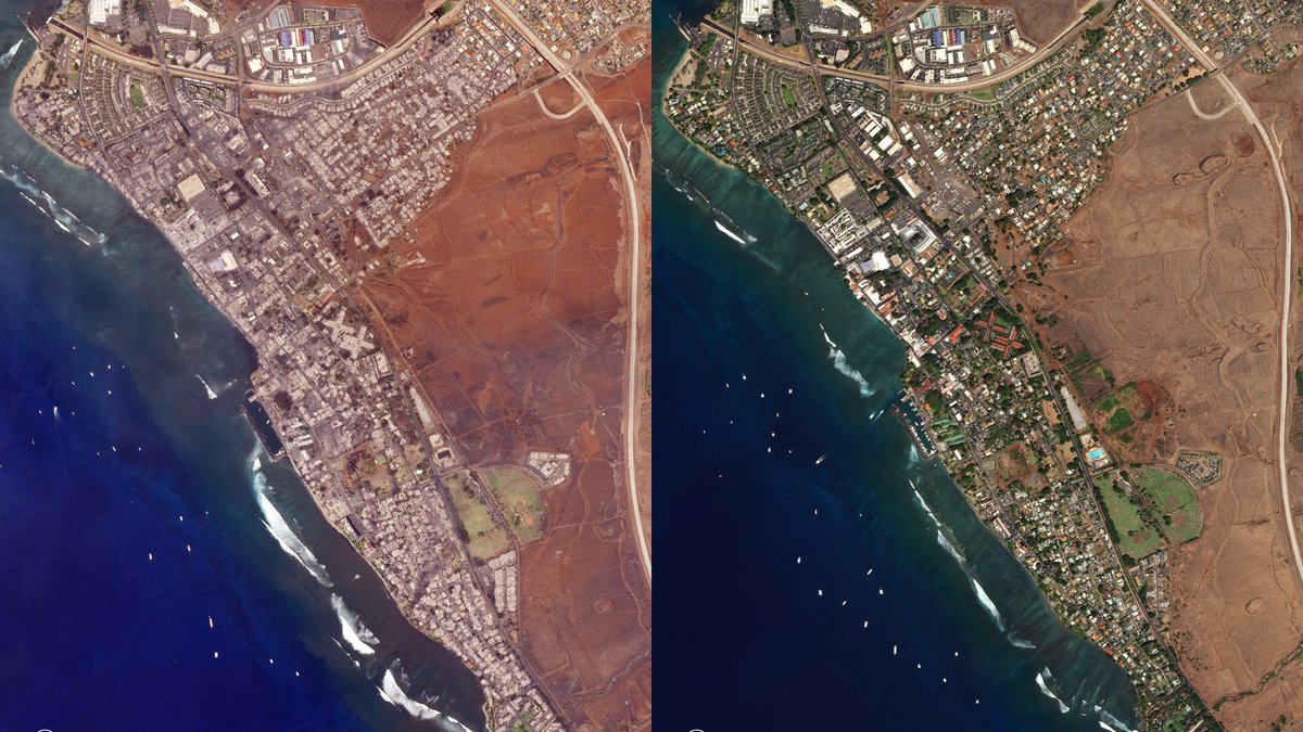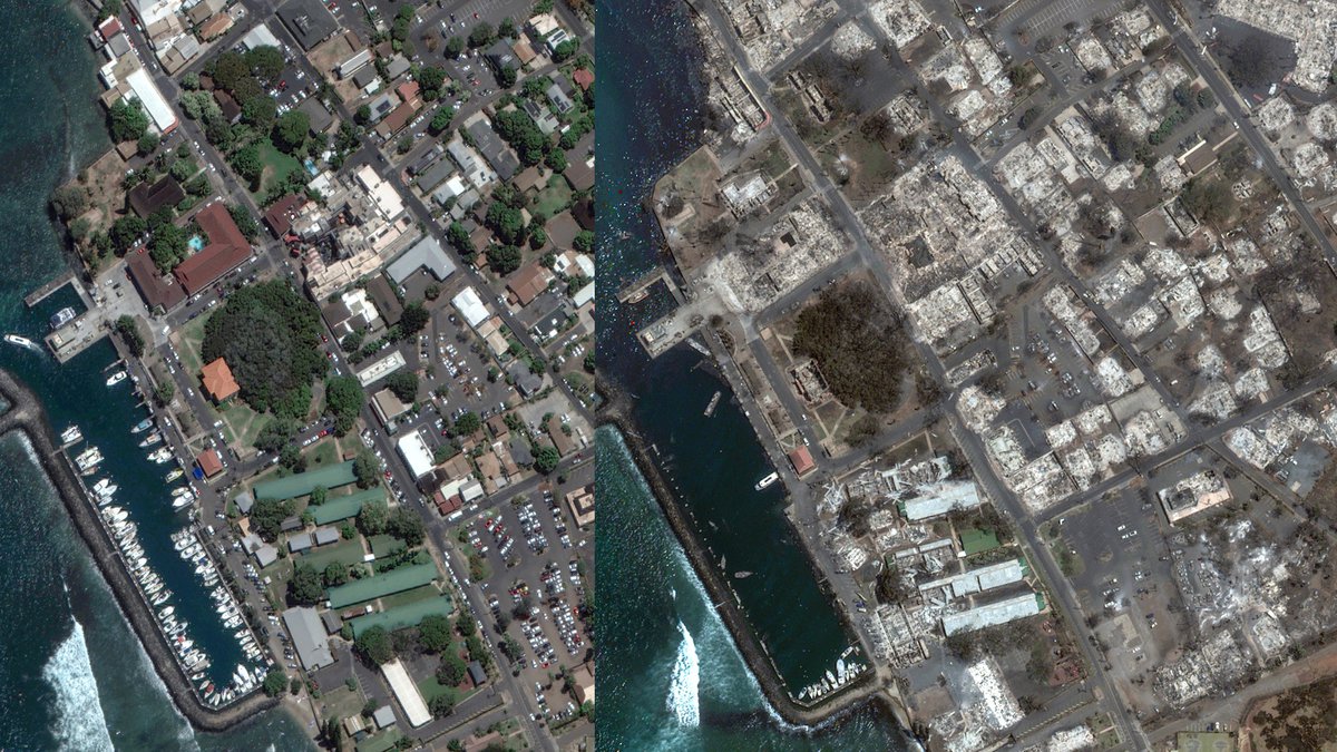 На Гавайских островах уже несколько дней бушуют мощные лесные пожары: десятки людей погибли, тысячи остались без крова. Увидеть масштабы разрушений можно на спутниковых снимках, предоставленных NASA и Maxar Technologies.
