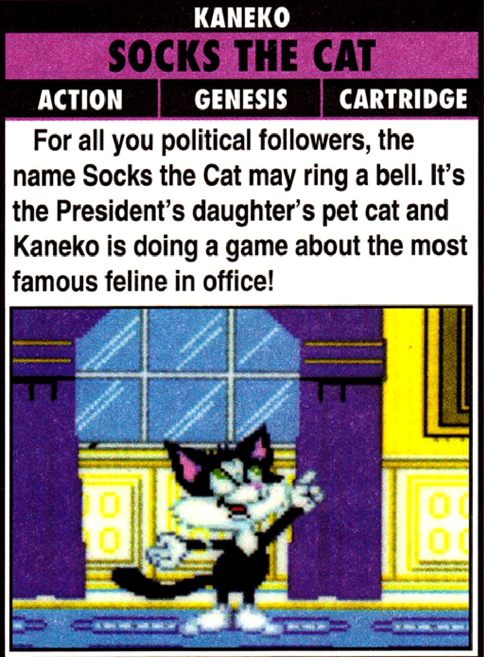 Что же это была за игра? В это трудно поверить, но про кота президента Билла Клинтона, по кличке Сокс. Игра была платформером, высмеивающая политиков, шпионов, издателей игры... Сюжет игры был прост: Сокс – честный кот и не мог смотреть на то, как недобросовестные власти США утаивают от СМИ пропажу ядерной бомбы. Задача Сокса – через трудности, продажных политиков и шпионов пройти к СМИ и доложить об инциденте, угрожающей целостности США.