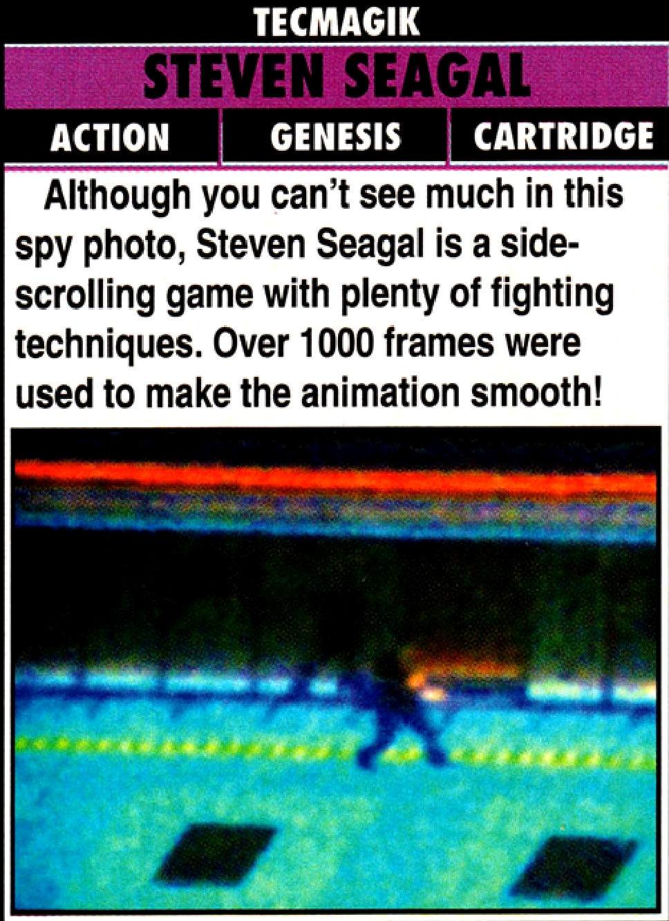 Всё что известно про версию для Mega Drive – это был бы не прямой порт с Super Nintendo Entertainment System, где игра и разрабатывалась, а лишь адаптацией с уникальным сюжетом и игровым процессом. Также, все статьи в журналах пишут об одном – для плавности анимации было сделано более тысячи кадров! Разумеется, о таких числах речи не идёт, просто-напросто из-за особенностей Mega Drive, носителя и в целом возможностей консоли... К слову, по словам очевидцев, показанная игра на CES действительно демонстрировала потрясающую, для Mega Drive, анимацию движений Стивена Сигала... Правда это был спрайт Сигала, который просто ходил на чёрном фоне, но с очень плавной анимацией! К сожалению, как я описал ранее, очевидцы сообщают, что на это ушли все возможности Mega Drive и добиться такого в финальной игре было попросту невозможно.