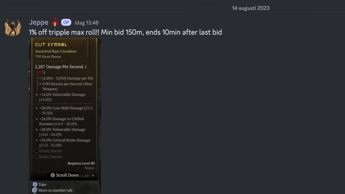 Арбалет быстро подорожал сперва до 1 миллиарда золотых, а затем до 10 миллиардов. Хотя в Diablo 4 один персонаж может владеть максимум 9.999 миллиарда золотых, игроков это не смутило — в итоге арбалет продали за 30 миллиардов.