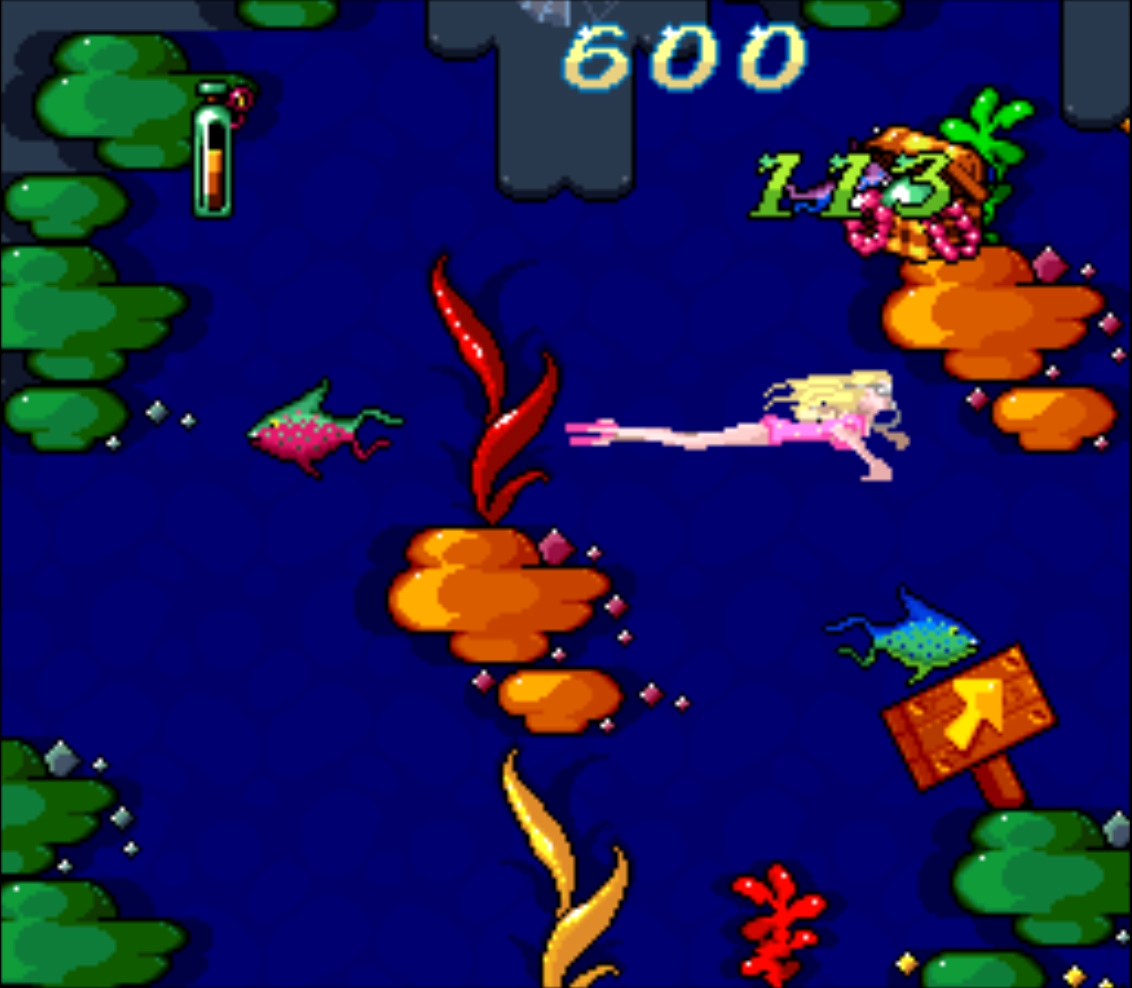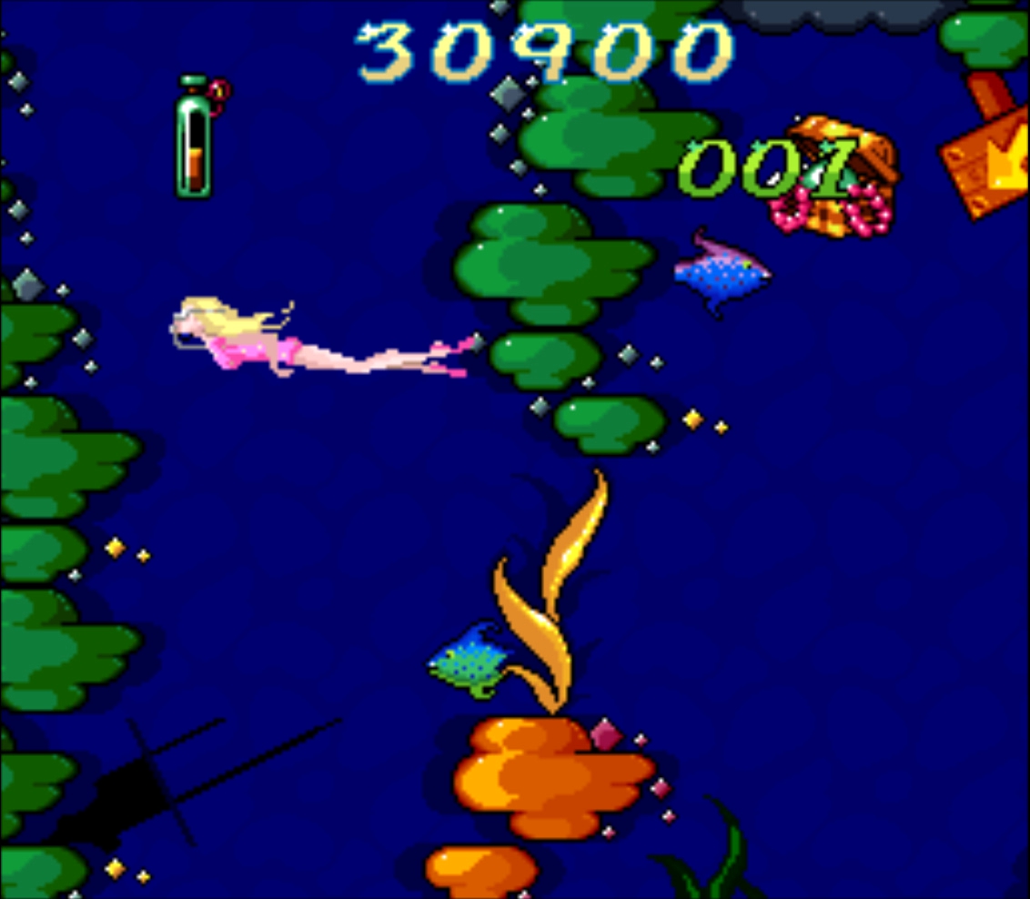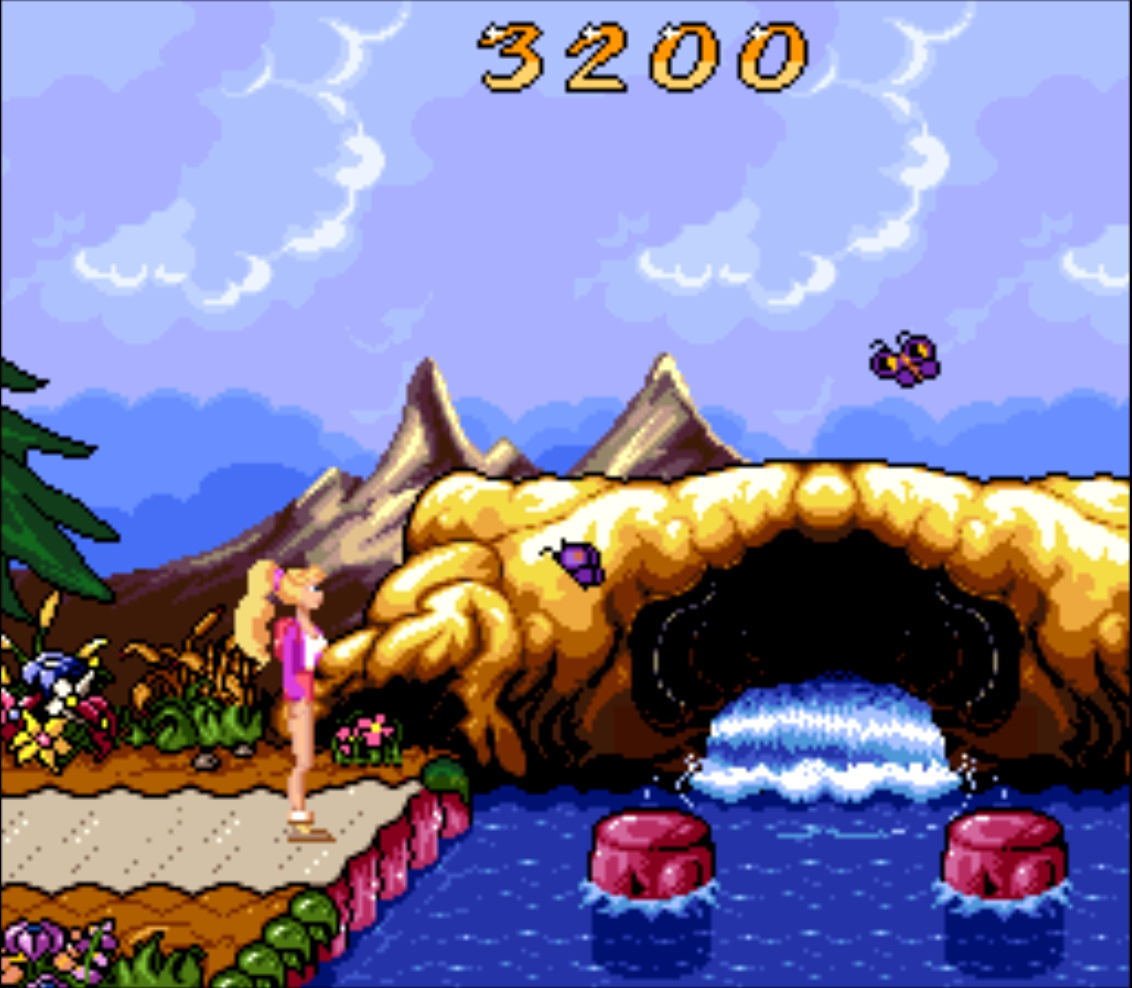 Снова я скопировал описание из прошлой статьи, но, компенсируем это дело сравнение с прототипом для Mega Drive. Удивительно, но игра что на Mega Drive, что на Super Nintendo Entertainment System – проходима от А до Я. В общих чертах, версия для консоли Nintendo аналогичная версии для консоли Sega. Единственное, что различает обе версии – графика. В плане качества картинки Mega Drive проигрывает: цвета бледнее, разрешение ниже и детализация значительно хуже. Отличаются также некоторые кадры, локации и даже внешний вид самой Барби! Можно сказать, что над игрой действительно работали! Да и отличия сводятся к типичной адаптации игры под различные платформы, с попыткой сделать игру качественно и красиво на всех платформах.