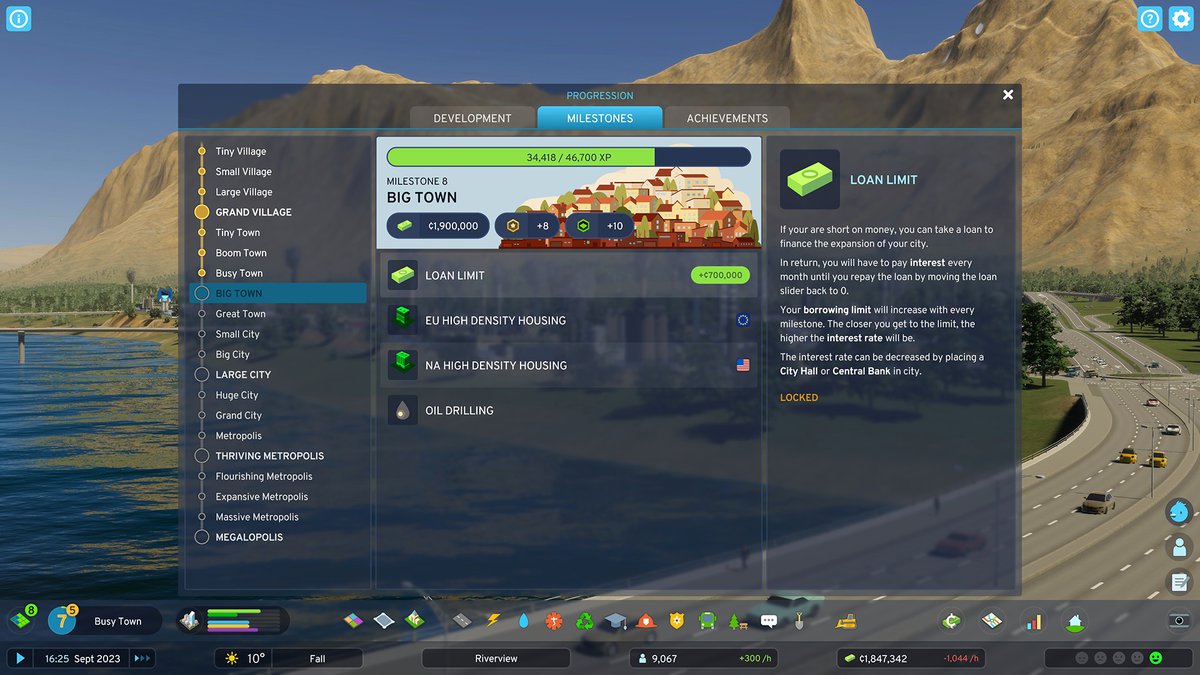 - По мере открытия новых вех игроки могут получить доступ к дополнительным регионам для развития города. Также вехи повышают налоговые и кредитные лимиты.