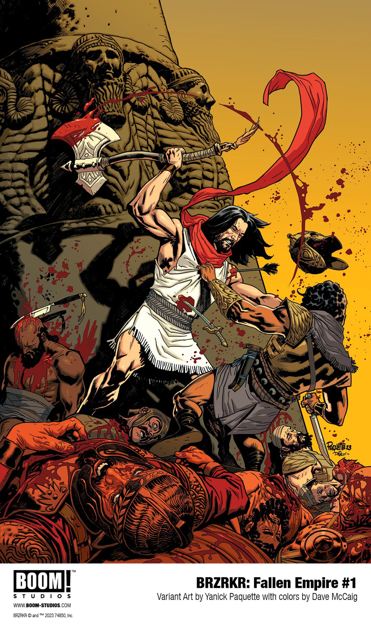 Редактор издательства Эрик Харберн пояснил, что смысл этих небольших спиноффов - давать возможность лучшим авторам работать над развитием этой вселенной. BRZRKR: Fallen Empire поступит в продажу 29 ноября. Были опубликованы концепты персонажей.