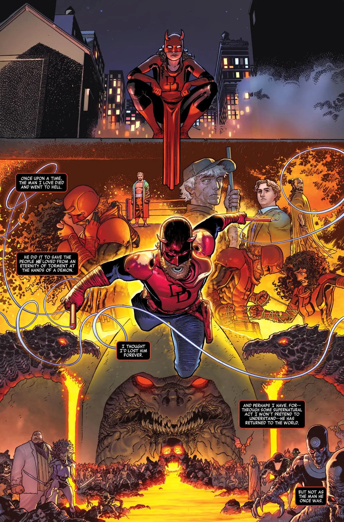 На прошлой неделе закончилась комикс серия Daredevil от Чипа Здарски, Марко Кеккето и Мэттью Уилсона. В ней Мёрдок пережил смерть и воскрешение. Он буквально выбрался из ада, но то ли память потерял, то ли другим человеком стал.