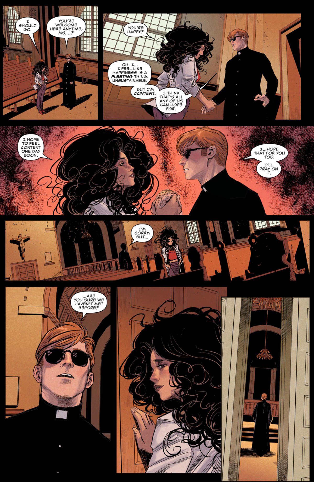 Еще есть метафизический/духовный аспект, который — хотя он католик, а я мусульманин — давно привлекал меня к Мэтту как к персонажу. Проще говоря, я провел много времени, беспокоясь о том, что разочаровал Бога – и это кайф проникнуть в голову и душу одного из немногих супергероев, который думал так же.