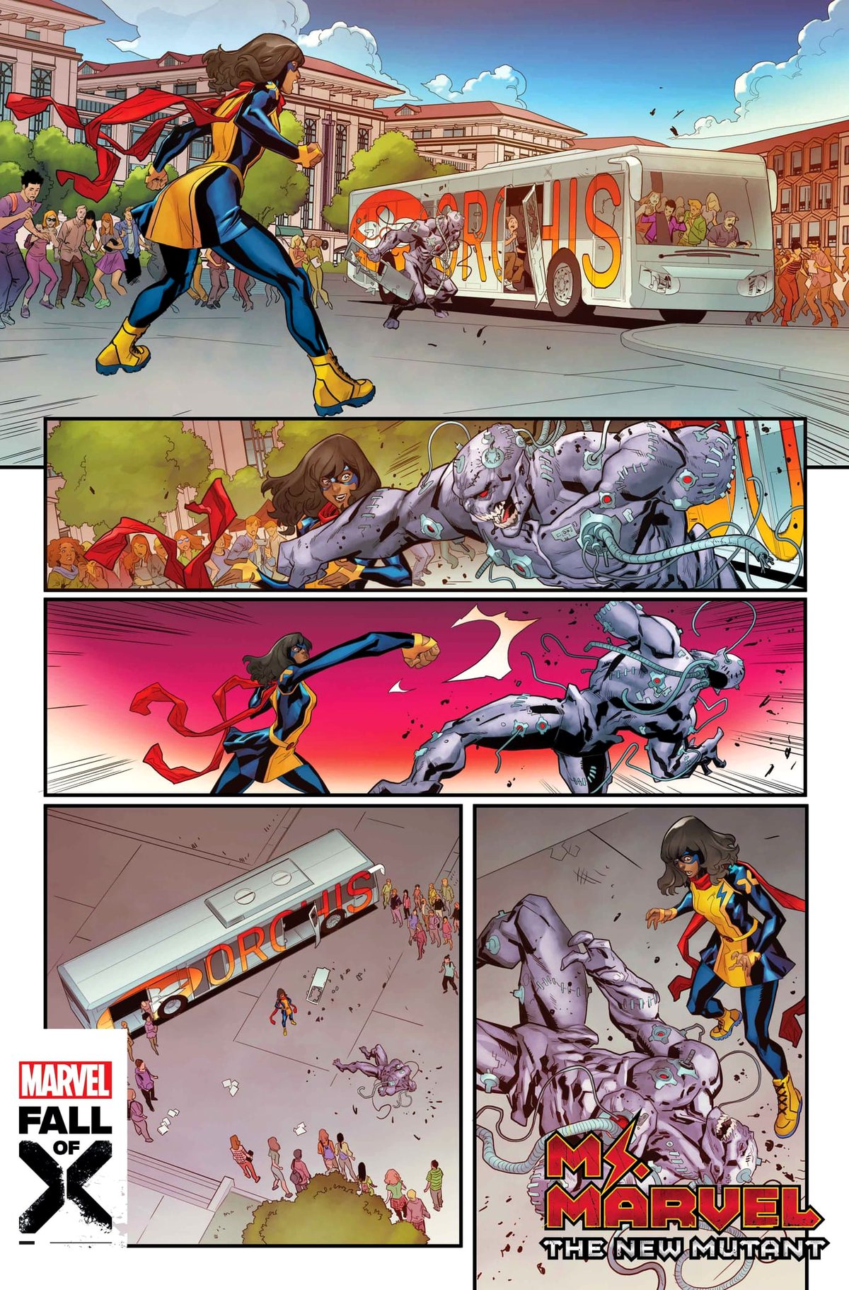 Общественное мнение о Мисс Марвел резко меняется, и она впервые чувствует, каково это — быть злодеем и врагом, потому что особенно после Hellfire Gala мир просто ненавидит мутантов — это ужасно! Мы поместили Камалу в университет Эмпайр Стейт и создали программу, финансируемую Orchis... и для неё это ожидаемо тяжело!