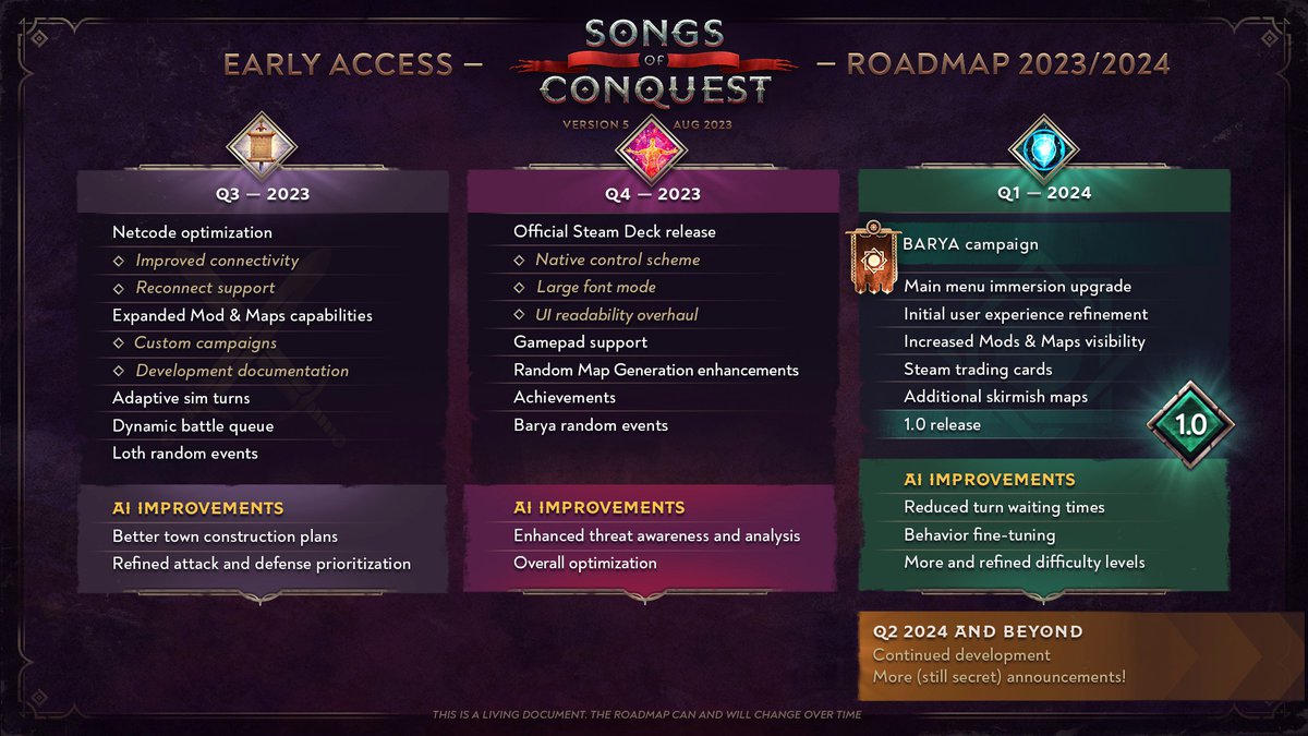 Разработчики пошаговой стратегии Songs of Conquest опубликовали 5-ую версию дорожной карты. Ранее ожидалось, что уже в этом квартале этого года состоится полноценный релиз, и последнюю кампанию хотели выпустить в этот же срок, но теперь стало ясно - не получится. Вот новый план: