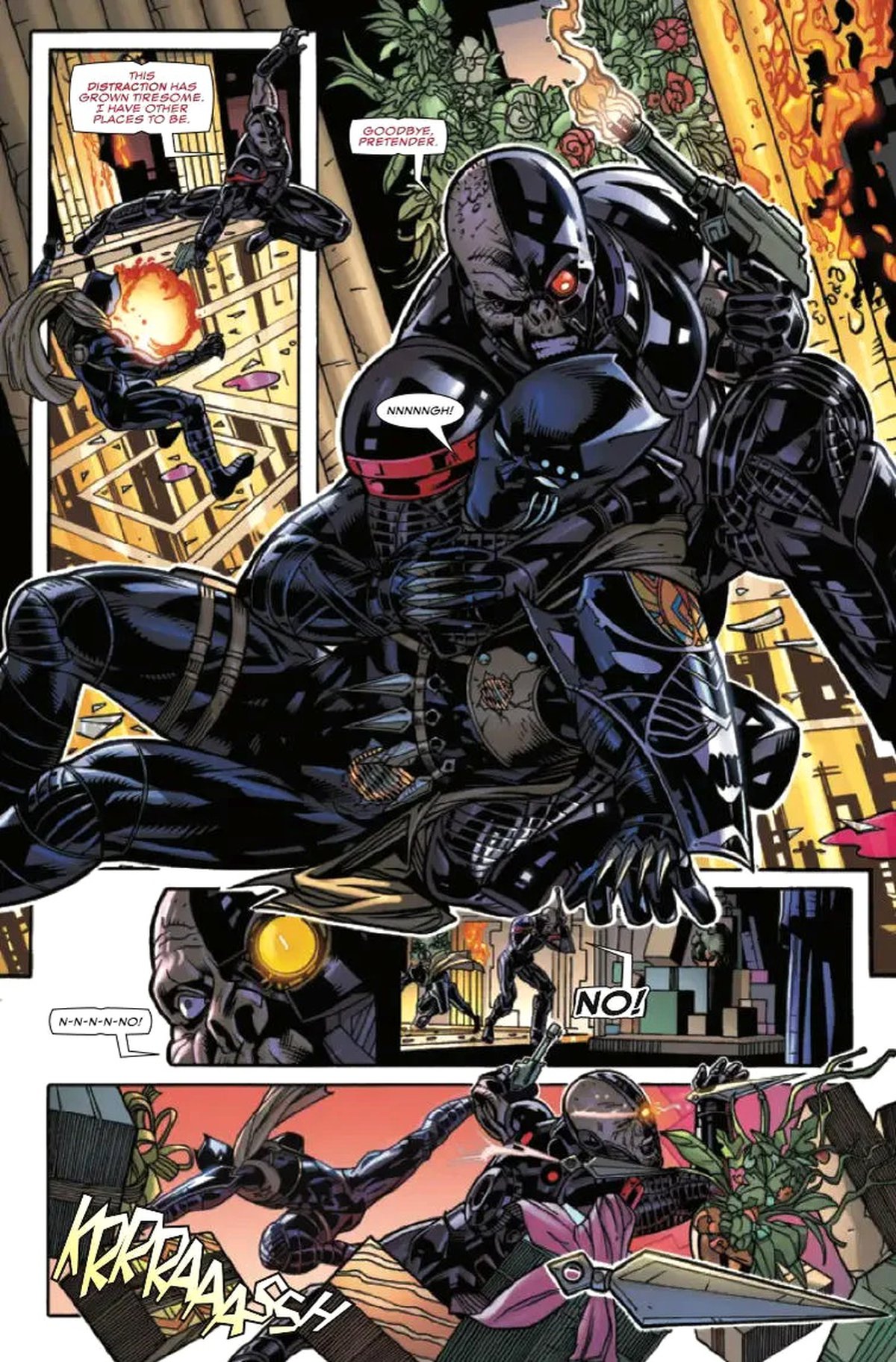 Т'чалла сражается с Детлоком, отмечая его улучшение, а Бэйса решает смотаться, но тот и в неё попытался пострелять.