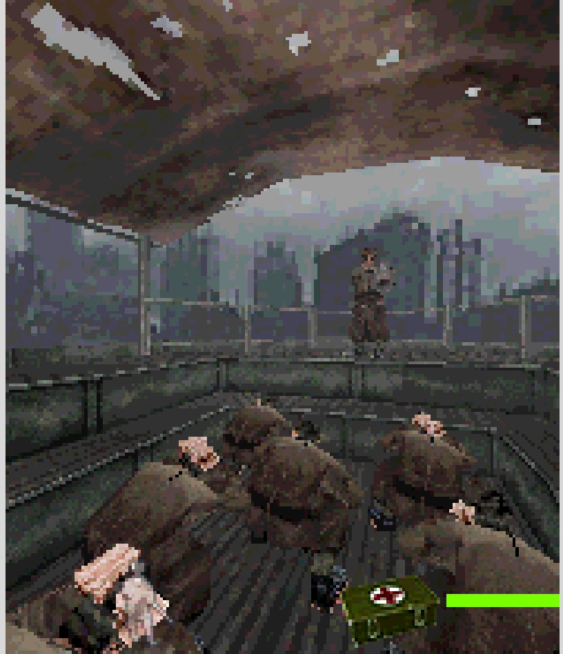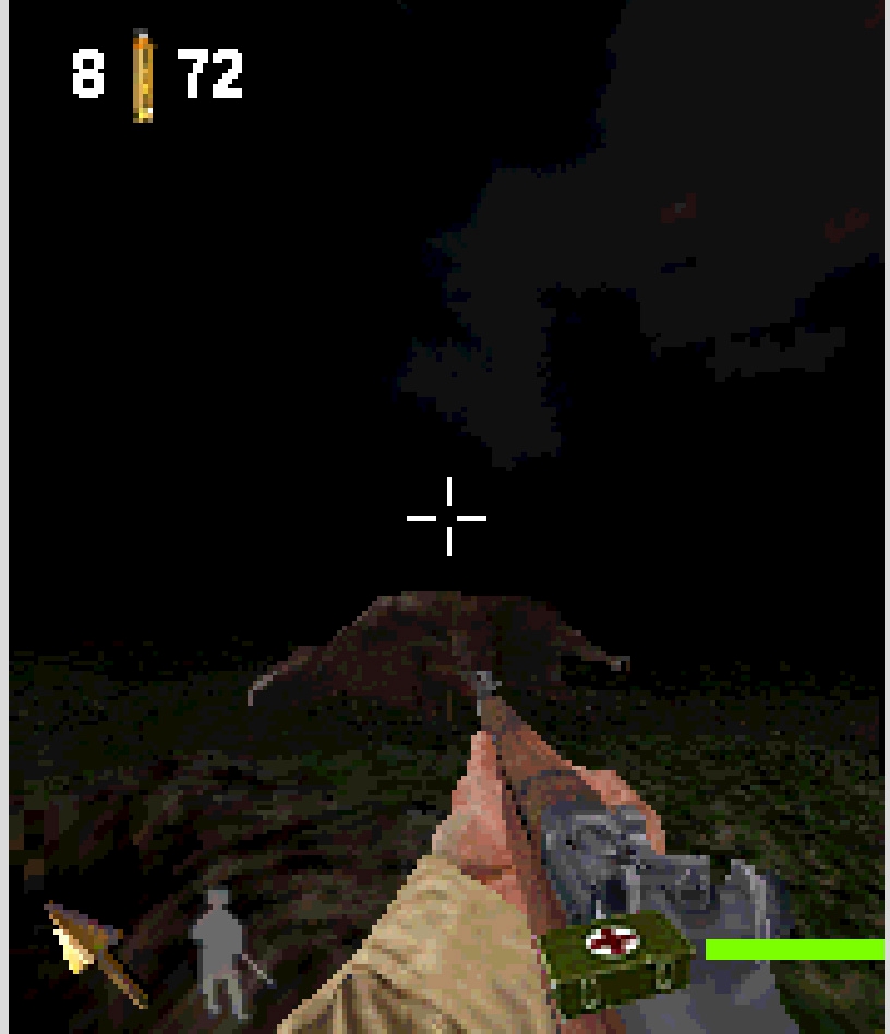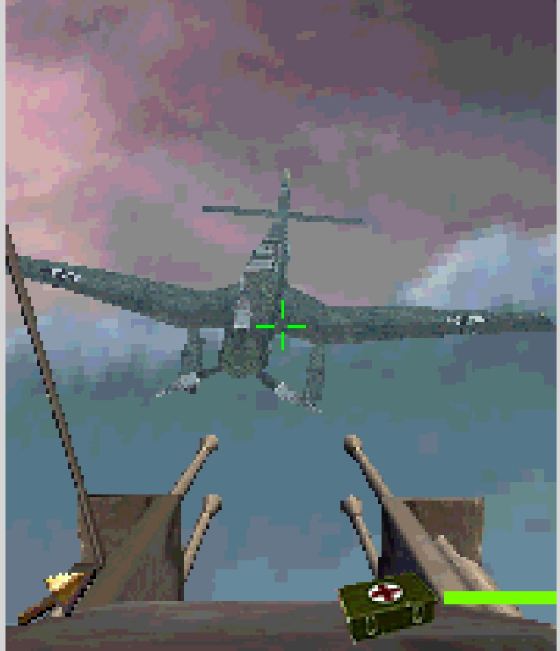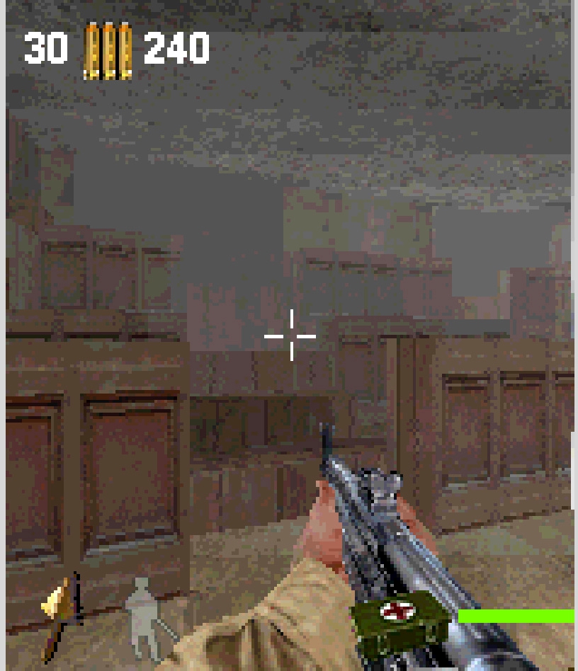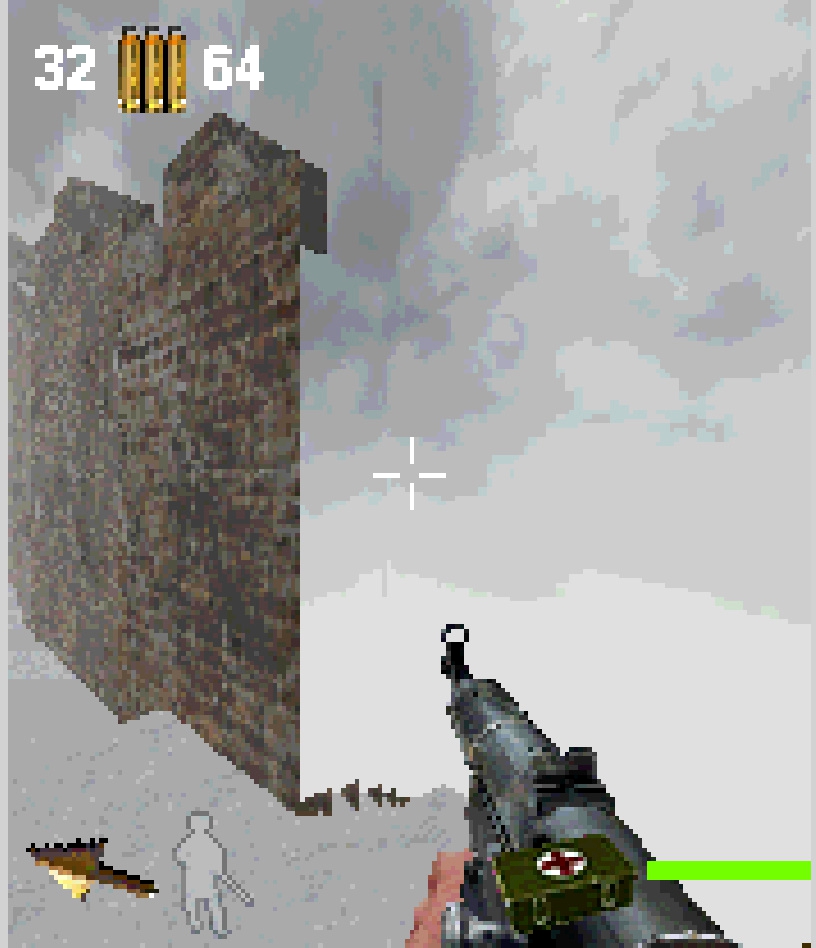 Рано или поздно грузовик останавливается и как в оригинальной игре нам нужно из снайперской винтовки защищать нашего товарища, пока тот минирует деревянный мост. Разумеется, взрыва нам не покажут, да и снайперский прицел нарисован так, будто взяли Paint и спреем попшикали по центру экрана... Зачем так сделано, увы, не ясно.