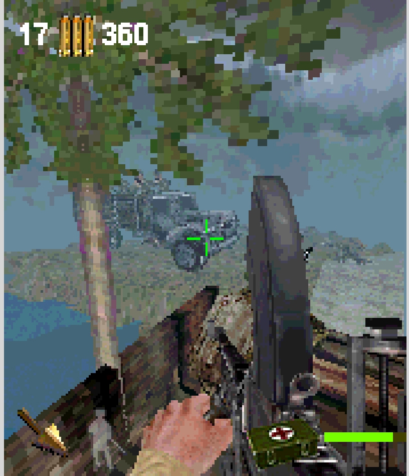 Вот уж чего я не ожидал увидеть на N-Gage, так это езду с перестрелками... Причём она долгая, дорога длинная и в одну миссию склеили аж две миссии! Выглядит езда... Очень бедно... Враги все стоят вблизи к грузовику, а вражеская техника стоит на месте, за исключением мотоциклов. Наш грузовик едет очень медленно и нудно. Во время езды нам нужно отстреливаться от врагов и даже панцершрек дают нам, чтобы взрывать технику! Только вот по всей видимости этот фрагмент не доработали, иначе я не могу объяснить пролетающие сквозь грузовики ракеты...