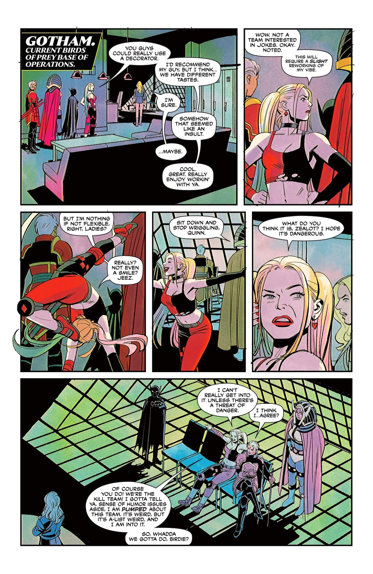 На этой неделе начала выходить новая серия комиксов Birds of Prey. Пишет её Келли Томпсон, рисует Леонардо Ромеро, красит Джорди Беллейр. Команда в произведении имеет необычный состав: Большая Барда, Кассандра Кейн, Чёрная Канарейка, Зилот и Харли Квинн.