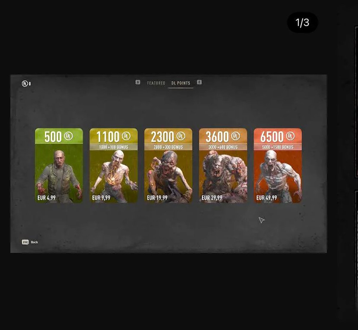 Одновременно с запуском события разработчики объявили о появлении в Dying Light 2 внутриигровой валюты. В обмен на DL Points игроки могут покупать тот же внутриигровой контент, что доступен в магазинах вроде Steam.