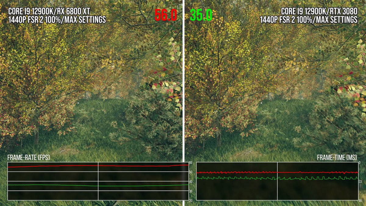 - Starfield заметно хуже работает на видеокартах Nvidia и Intel: например Radeon RX 6800 XT обходит GeForce RTX 3080 примерно на 40%. Это ненормально, возможно, дело в партнерстве с AMD.