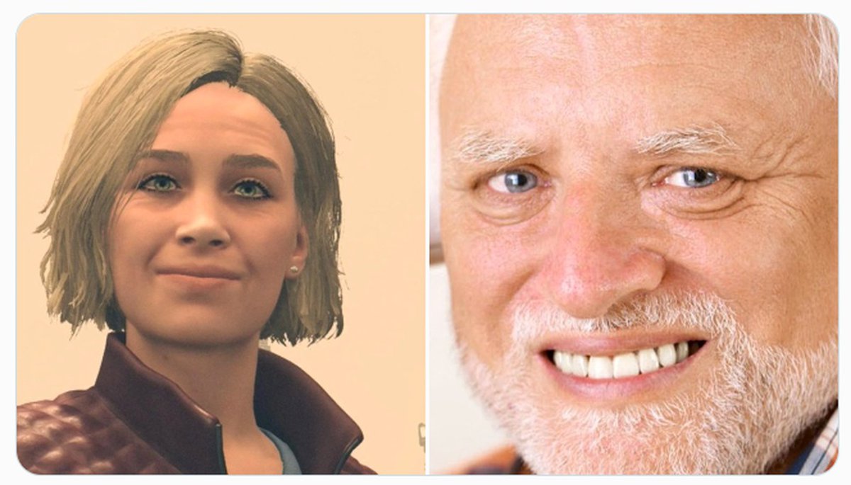 Кроме того, характерную для Starfield неестественную улыбку можно увидеть у героя мема «Гарольд, скрывающий боль».