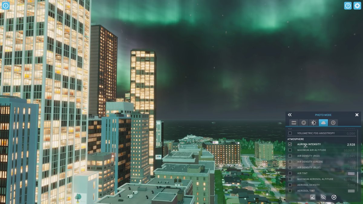 Фото-режим в Cities Skylines 2 устроен примерно так же, как в других проектах. Игрок может управлять параметрами камеры, добавлять фильтры и менять условия съемки. Например, разрешается напустить на город туман или устроить северное сияние.