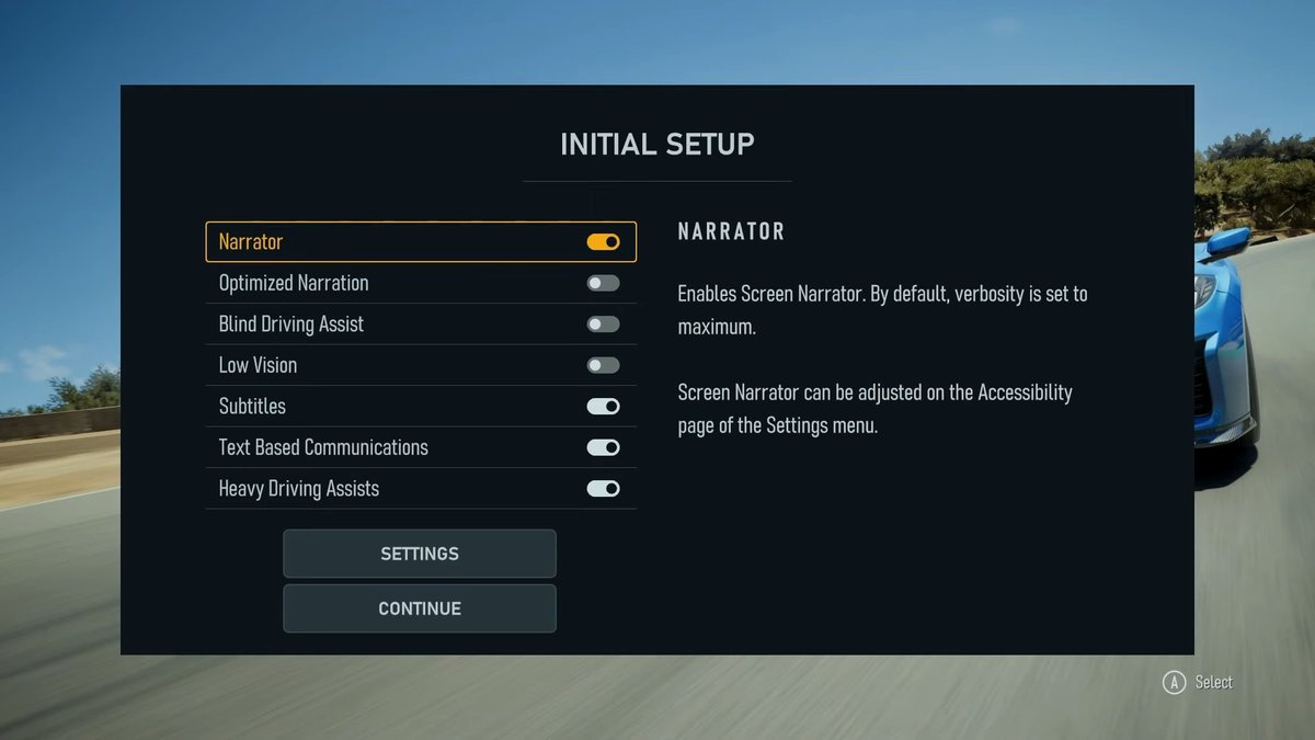 Заезд с включенными специальными возможностями стартует в районе пятой минуты ролика. Чтобы управлять машиной, Стив ориентируется на разнообразные подсказки.