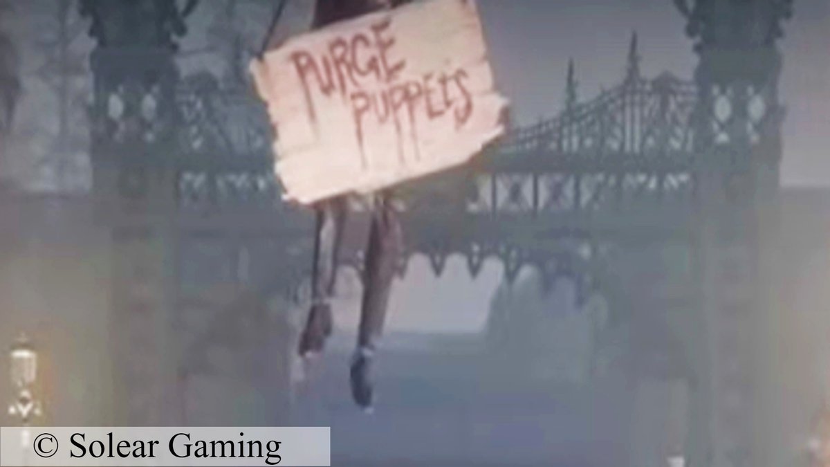 Если присмотреться к ранним геймплейным кадрам игры, то можно заметить безголовую куклу. На ее груди табличка с надписью APAB, All Puppets Are Bastards: «все куклы сволочи».