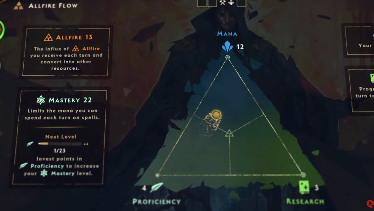 В трейлере продемонстрирована система распределения Архипламени. Это особый ресурс, получить который можно из специальных источников, навлекая на себя гнев других колдунов. Пламя можно перераспределять в ману, очки исследования или повышения мастерства, показатель которого, например, определяет используемое кол-во маны в ход, что влияет на частоту применения заклинаний.