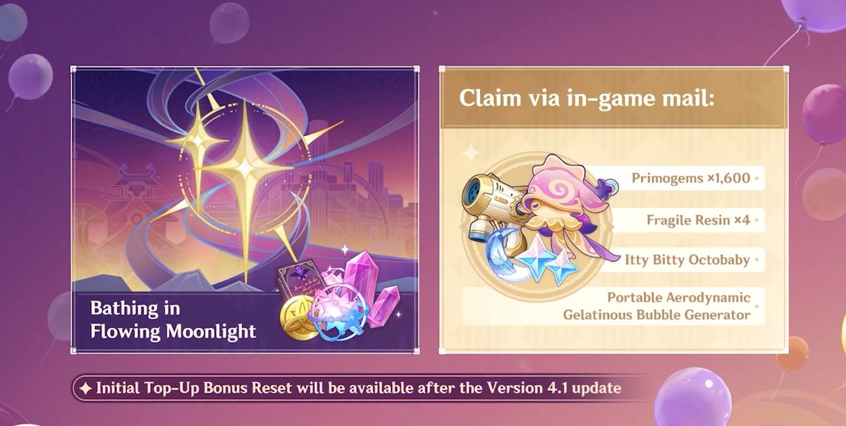 Награды начнут вручать только после выхода обновления 4.1. Большую часть подарков раздадут автоматически, за частью из них игрокам придется заходить в Genshin Impact ежедневно.