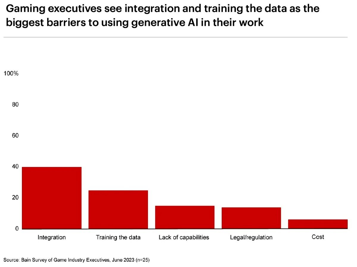 В исследовании приняло участие 25 руководителей игровых компаний со всего мира. Большинство опрошенных считают, что различные генеративные ИИ повысят качество игр и позволят выпускать их быстрее, лишь 20% полагают, что применение ИИ позволит удешевить игры.