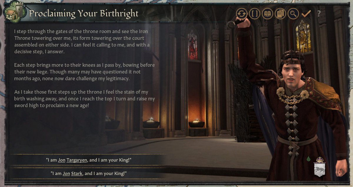 При победе короля бастард попадёт в тюрьму, там монарх решит его судьбу. В случае своей победы бастард становится королём, выбирает династию матери или отца, а игроку, который внебрачного наследника подначивал, будет предложена возможность играть за него.