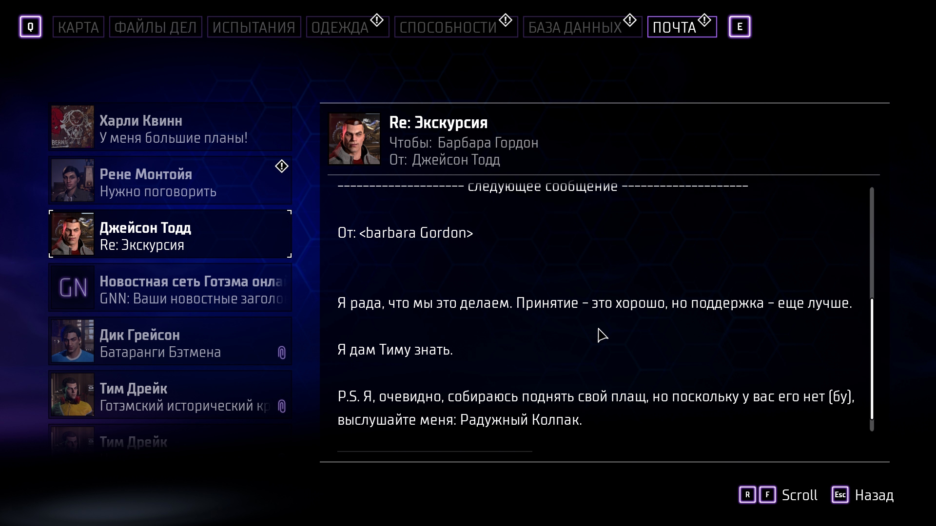 Ещё один признак присутствия ЛГБТ – почтовое сообщение, где герои собираются пойти на парад гордости и окрасить Красного Колпака в цвет радуги... Жаль, что этого в игре нет, я бы посмотрел, посмеялся.