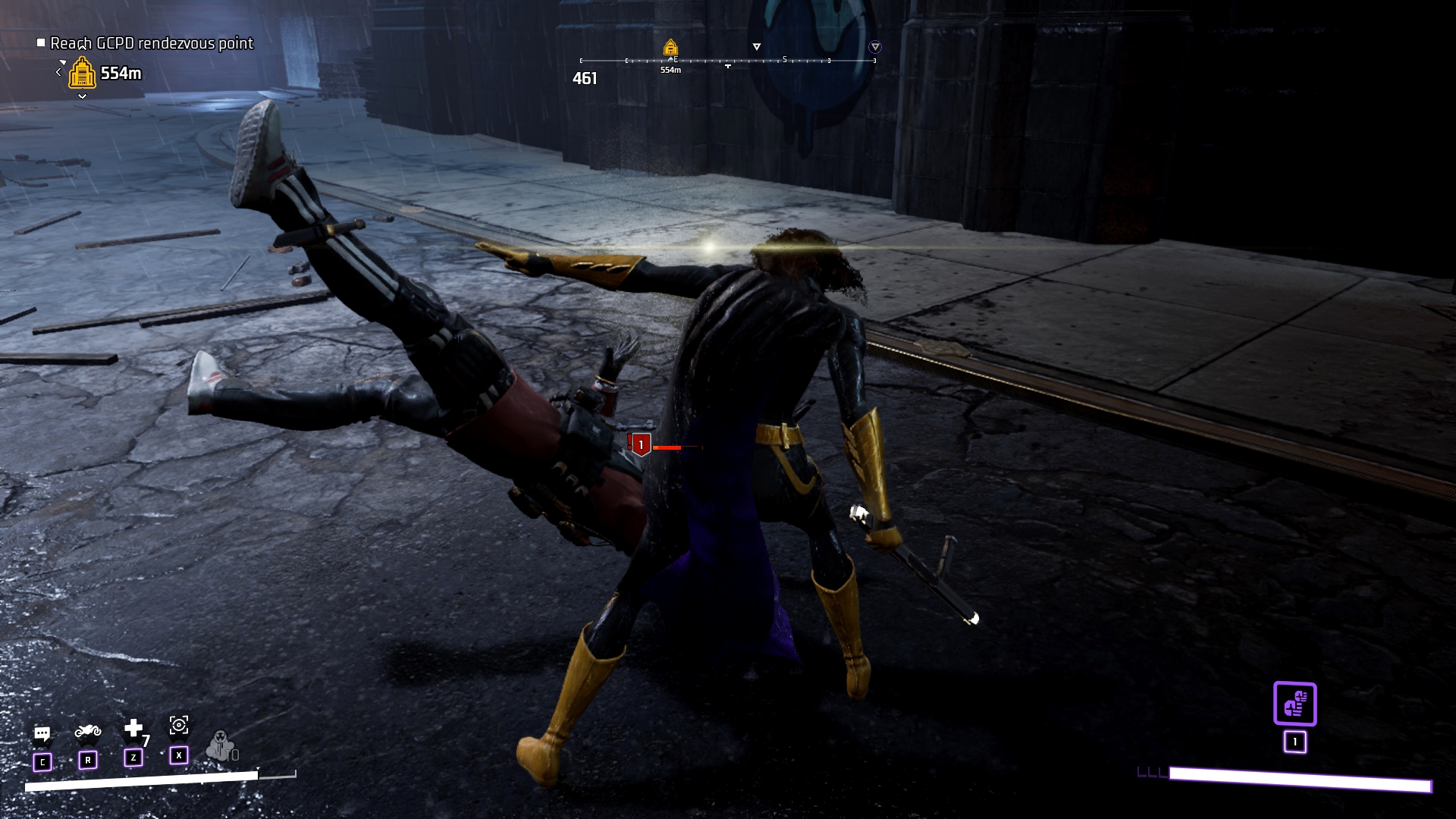 Я ни слова не написал про бэтцикл! А всё просто, это тупо средство для передвижения, про которое забываешь частично когда открываешь функцию полёта на плаще, а окончательно забываешь открыв быстрые перемещения по карте... Из него даже нельзя стрелять, только лишь махать руками и ногами как в Road Rash! Из миссий на нём нам даются лишь испытания на время и догонялки с бандитами... Тот же бэтмобиль в Batman: Arkham Knight был выполнен лучше, за счёт обширного набора как побочных, так и сюжетных баталий, гонок и полос препятствий. Более того, в Gotham Knights практически нет разрушаемых объектов, когда как Бэтмобиль в Batman: Arkham Knight превращал бедный Готэм в руины... Это было классно!