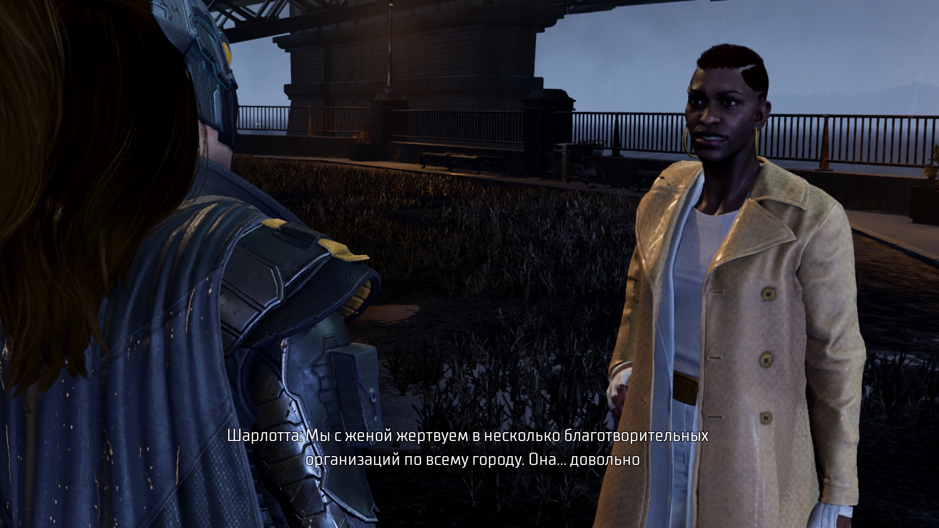Второе, что озадачивает в сюжете – Найтвинг уверяет нас, что Харли не злодейка и что Бэтмен вёл с ней дела... При этом Харли тусовалась с Джокером ранее, который убил Красного Колпака и обездвижил Барбару... Всё это приправляется тем, что она ещё и в самой игре распространяет наркотики, организовывает банду и становится нашим противником... Видать, Найтвингу очень хочется тяночку, пускай даже и Харли...