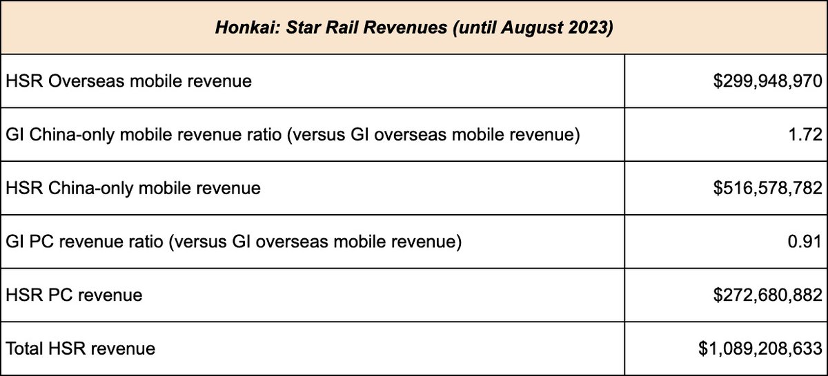 Аналитическая компания Naavik выпустила отчет, посвященный Honkai Star Rail, последнему проекту китайской студии miHoYo. Аналитики считают, что с момента релиза 26 апреля 2023 года и до августа того же года Honkai Star Rail заработала больше $1.089 миллиарда.