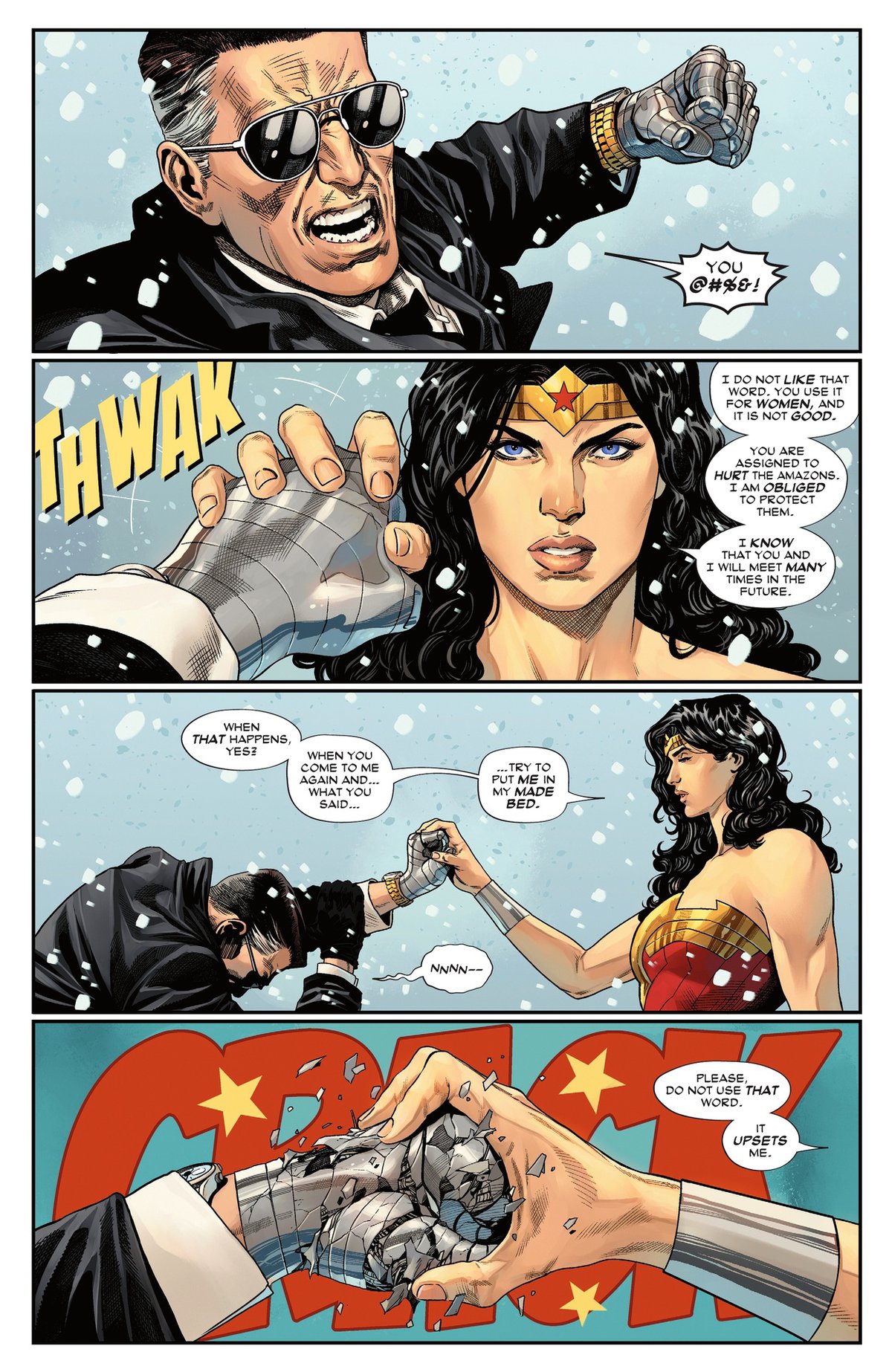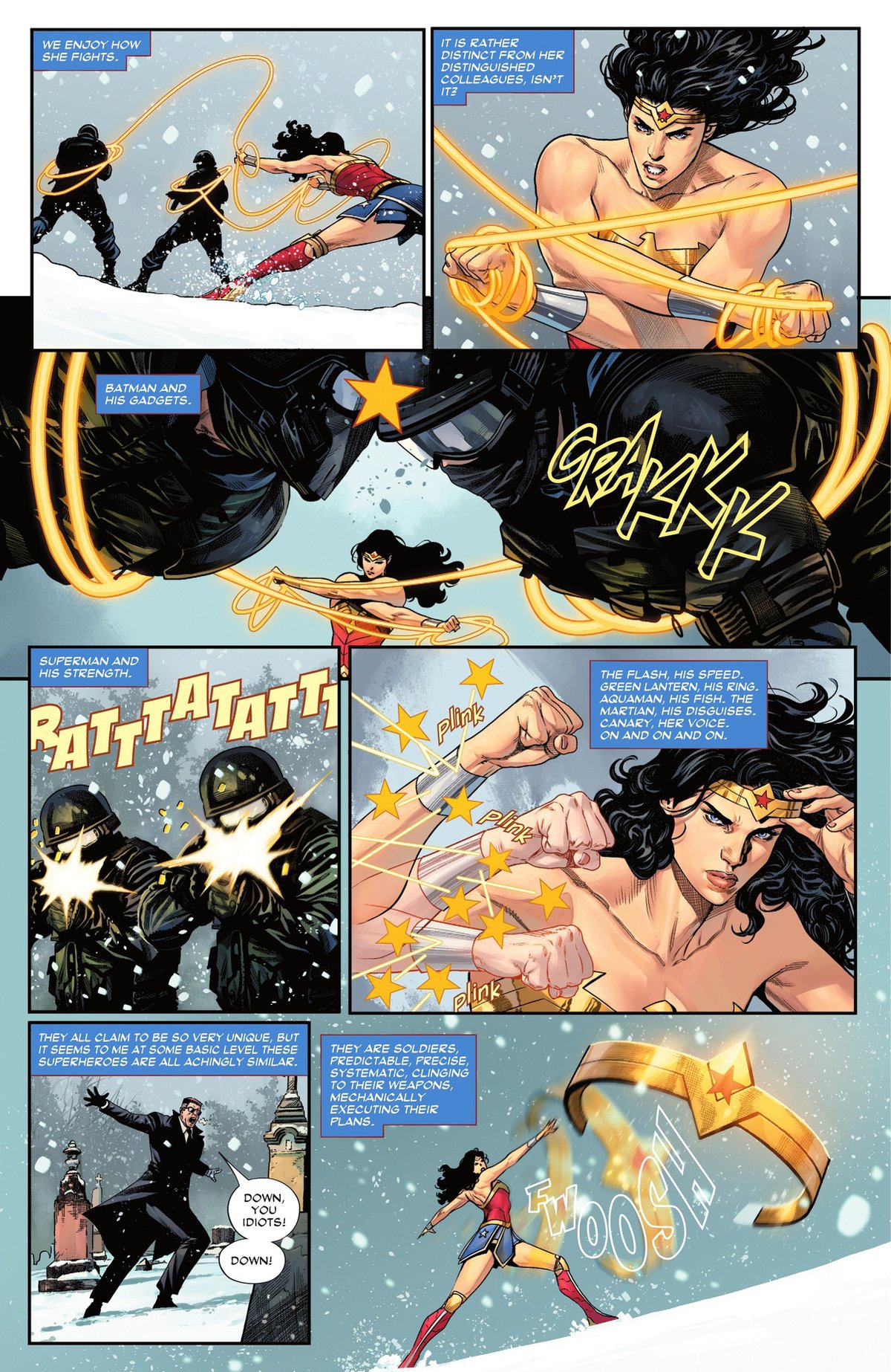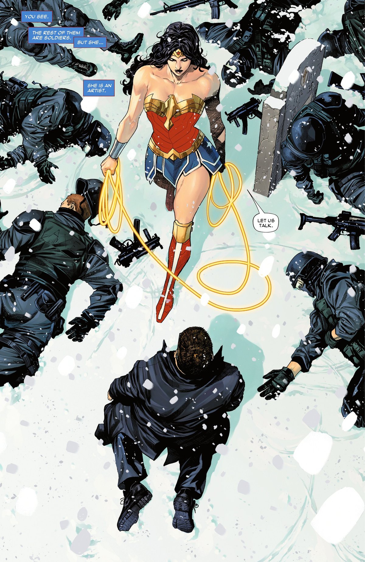 Том: Чудо-женщина чрезвычайно сильна. Она величайший воин в мире воинов. Она миф во плоти. Это не тот, кого можно победить с помощью большого монстра или блестящего камня. Новый злодей, которого мы представили в первом номере — злодей наравне с Лексом Лютором или Джокером — прекрасно осознает эту реальность. У него есть план нанести удар в сердце нашей героини. Как отреагирует Чудо-женщина, как она выдержит этот невероятный удар и продолжит сражаться – вот история этого комикса.