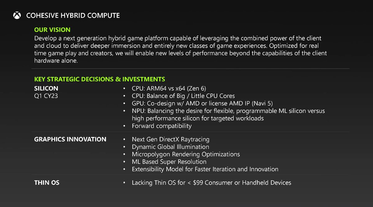 Согласно документам, Xbox нового поколения может получить CPU на базе ARM64 или Zen 6, GPU на базе Navi 5 и чип для работы с нейросетями, также планируется связать консоль с облачным игровым сервисом. Вот что в Digital Foundry думают по этому поводу: