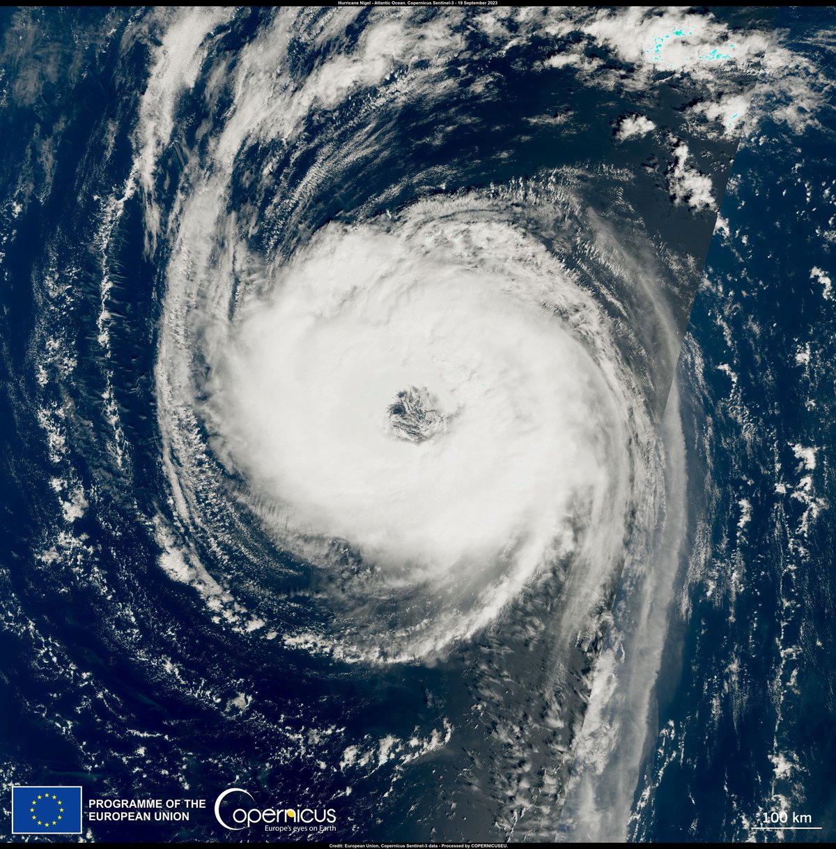 На фотографиях можно заметить так называемый глаз бури, относительно спокойную область в самом центре урагана. В случае Найджела в глазе бури, видимо, тоже было не особенно спокойно: он довольно плотно прикрыт облаками.