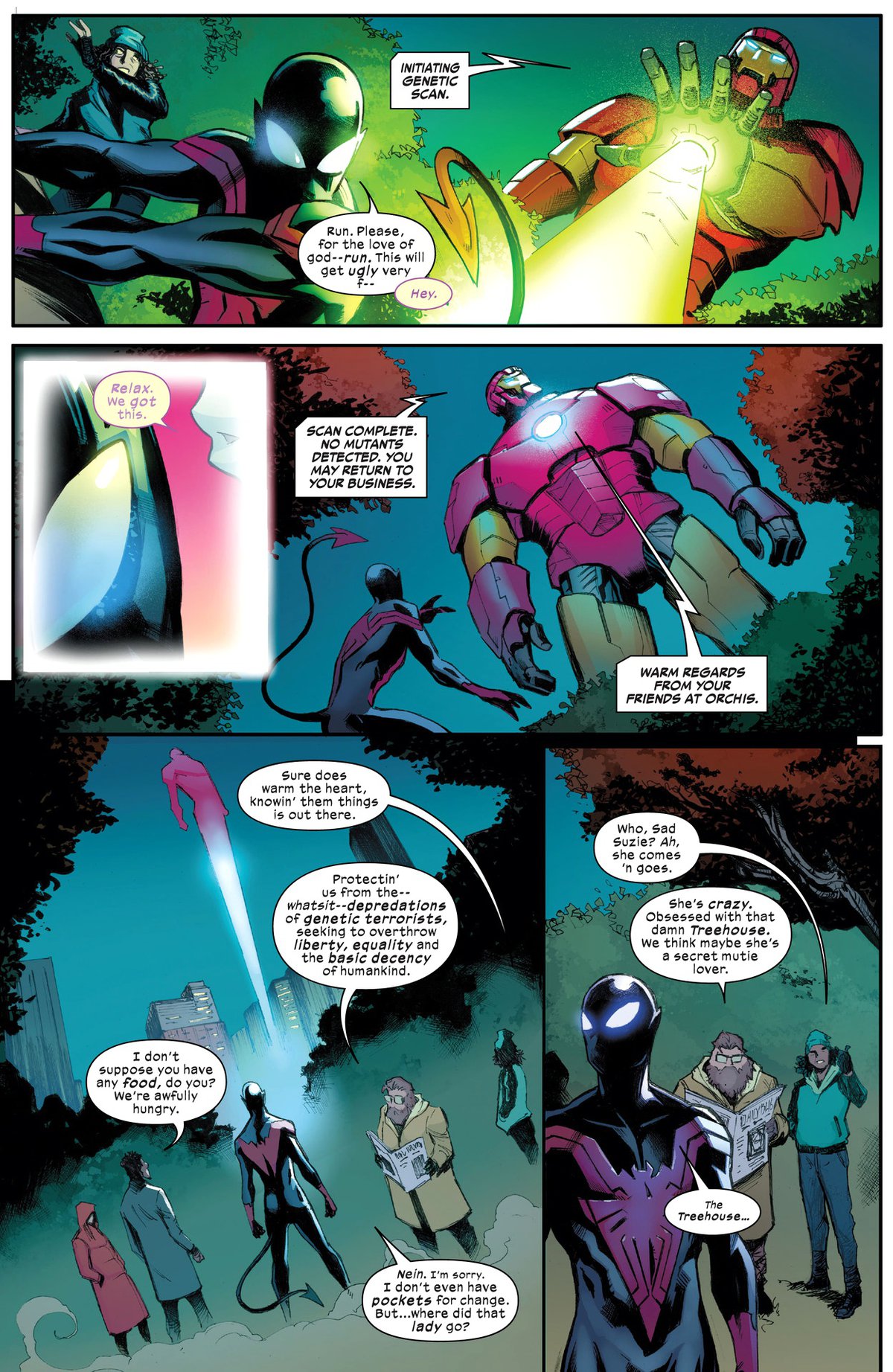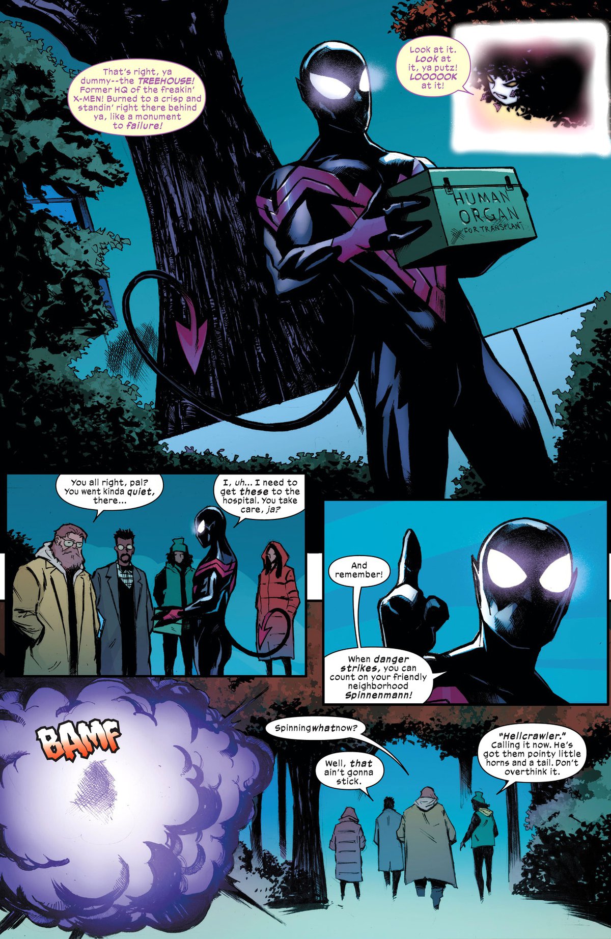 Саймон: Скрываться под открытым небом, будучи немутантом, — это то, чем мы немного занимаемся. В этом Курту помогают два контекстуальных элемента. Во-первых, грубое отношение жителей Нью-Йорка к постоянно расширяющимся рядам и разновидностям Пауков, замеченных на их улицах.