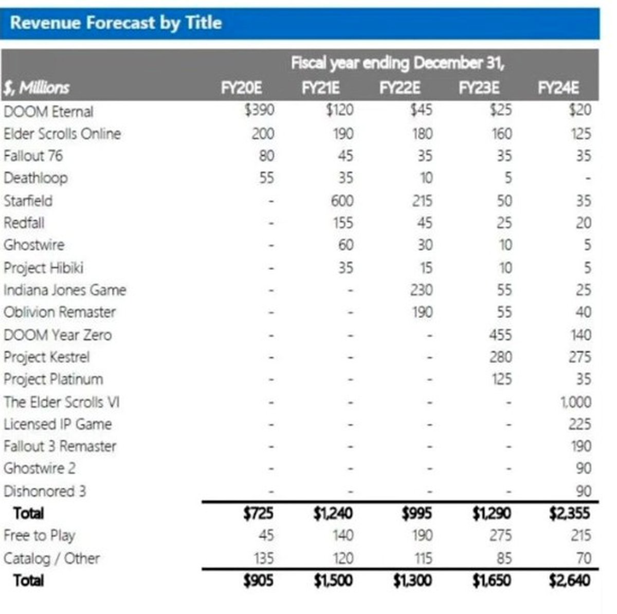 В документах Microsoft, раскрытых в ходе суда с Федеральной торговой комиссией США, отыскали прогноз по выручке множества игр Bethesda Softworks. По всей видимости, прогноз делался до релиза Doom Eternal, то есть не позже марта 2020 года.