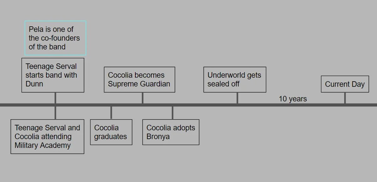 Например, Пела — одна из создательниц музыкальной группы, в которой играет Сервал. На момент создания группы она была в резерве Среброгривых Стражей и проходила обучение в кадетском корпусе.