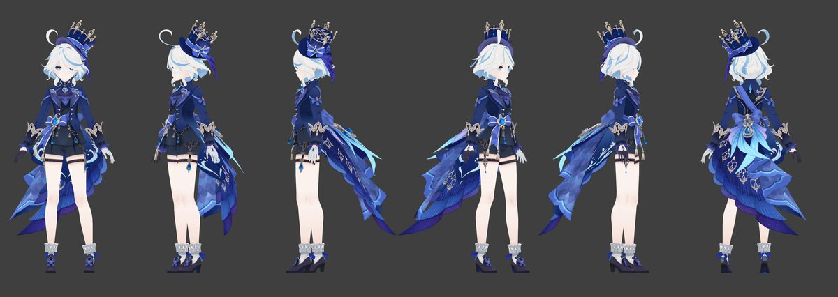 Инсайдер Dimbreath опубликовал рендеры внутриигровой модели играбельной версии Фурины. Хорошо видно, что костюм персонажа отличается от наряда, который носит архонт гидро.
