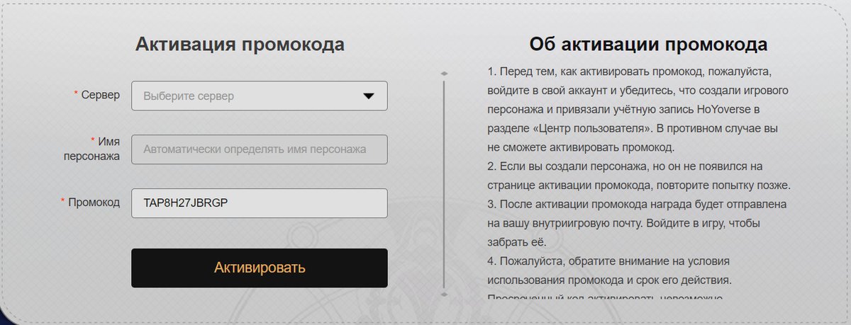Обратите внимание: если вы активируете промокод через сайт, то вам придется выбрать сервер, на котором вы играете; скорее всего, это будет европейский сервер. После выбора сервера автоматически загрузится список персонажей, если нужного героя там нет — значит, вы ошиблись с сервером.