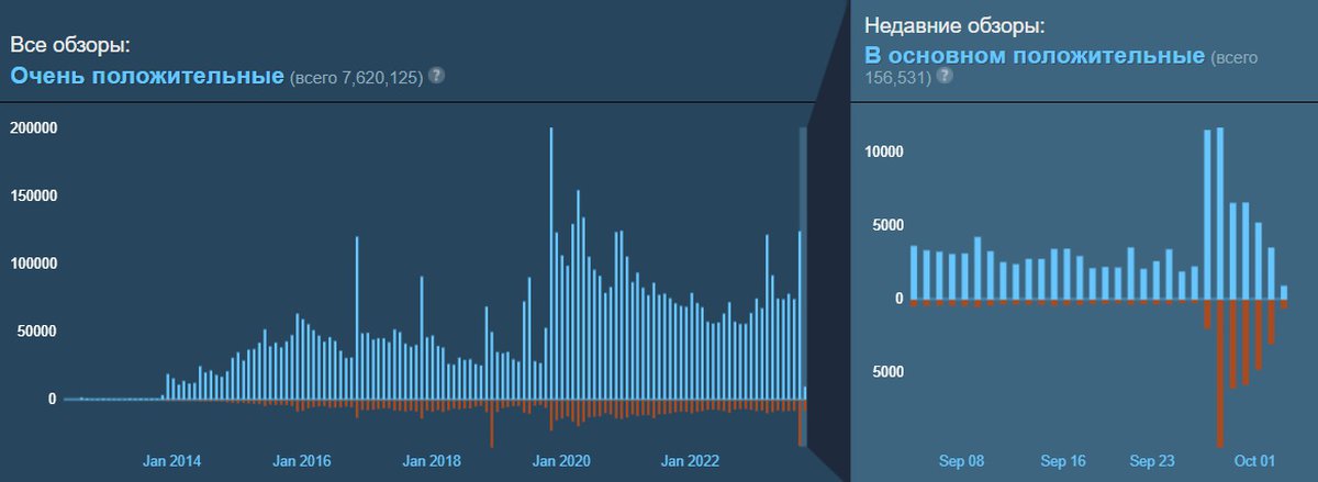 К середине дня 3 октября рейтинг игры за последние 30 дней упал до «в основном положительного». За 2 октября Counter-Strike 2 получила почти 3 тысячи отрицательных отзывов и 3537 положительных отзывов.