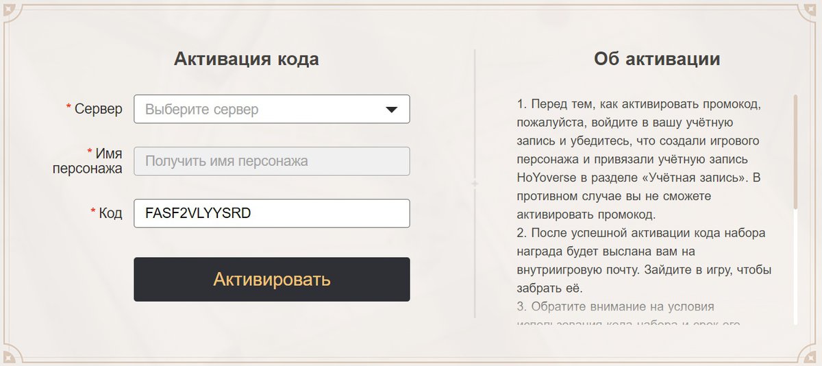 Есть другой способ активации промокодов. Код можно активировать с помощью официального сайта Genshin Impact, нужный раздел сайта находится вот по этой ссылке.