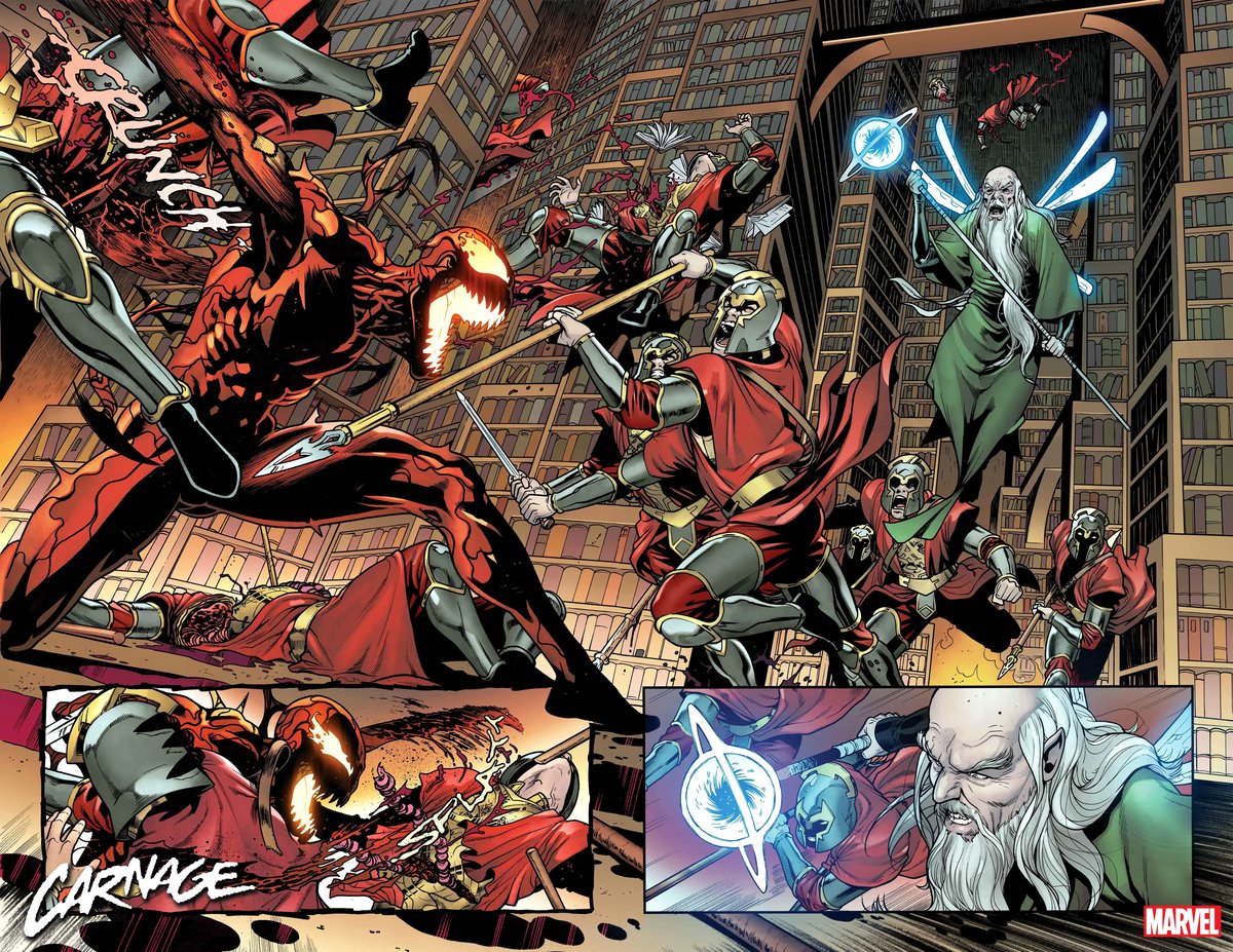 На сериях симбиотов произойдёт переворот - с ноября существующий онгоинг Venom и новый том Carnage будет писать сценаристка Торунн Грёнбекк. На ComicBook.com вышло интервью с ней про Карнажа, там и превью без текста было опубликовано.